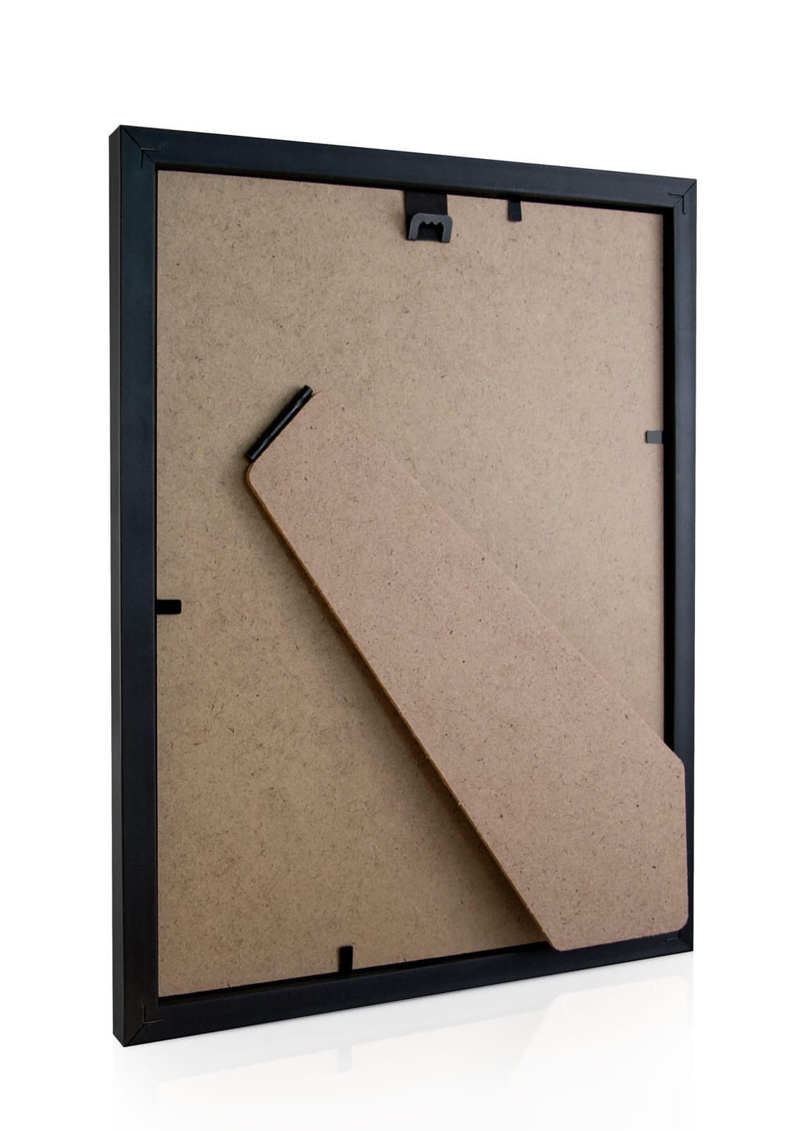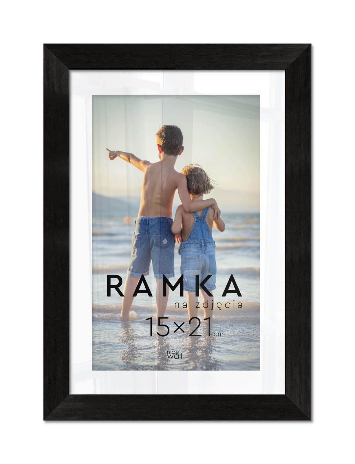 Ramka na zdjęcia 15x21 cm z podpórką Czarna Eleganckie ramki do oprawy plakatów, zdjęć i rysunków. Wykonane zpłyty pilśniowej, polistyrenu i lekkiej, przejrzystej pleksy 1 mm. Ramę można powiesić w pionie lub poziomie. Posiadają na plecach przymocowaną podpórkę, dzięki której można położyć oprawione zdjęcie na stojąco. Każdy egzemplarz jest zafoliowany. Posiadającertyfikat FSC. Wyprodukowanew Polsce. Wymiary ramy: 15x21 cm. Wymiary profilu: front 1,5 cm, bok 1,3 cm,