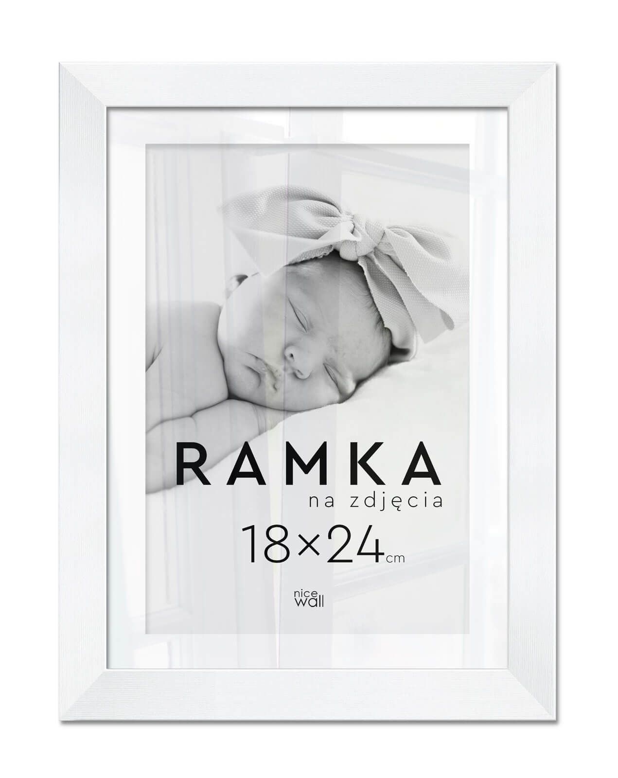 Ramka na zdjęcia 18x24 cm Biała Eleganckie ramki do oprawy plakatów, zdjęć i rysunków. Wykonane zpłyty pilśniowej, polistyrenu i lekkiej, przejrzystej pleksy 1 mm. Ramę można powiesić w pionie lub poziomie. Każdy egzemplarz jest zafoliowany. Posiadającertyfikat FSC. Wyprodukowanew Polsce. Wymiary ramy: 18x24 cm. Wymiary profilu: front 1,5 cm, bok 1,3 cm,