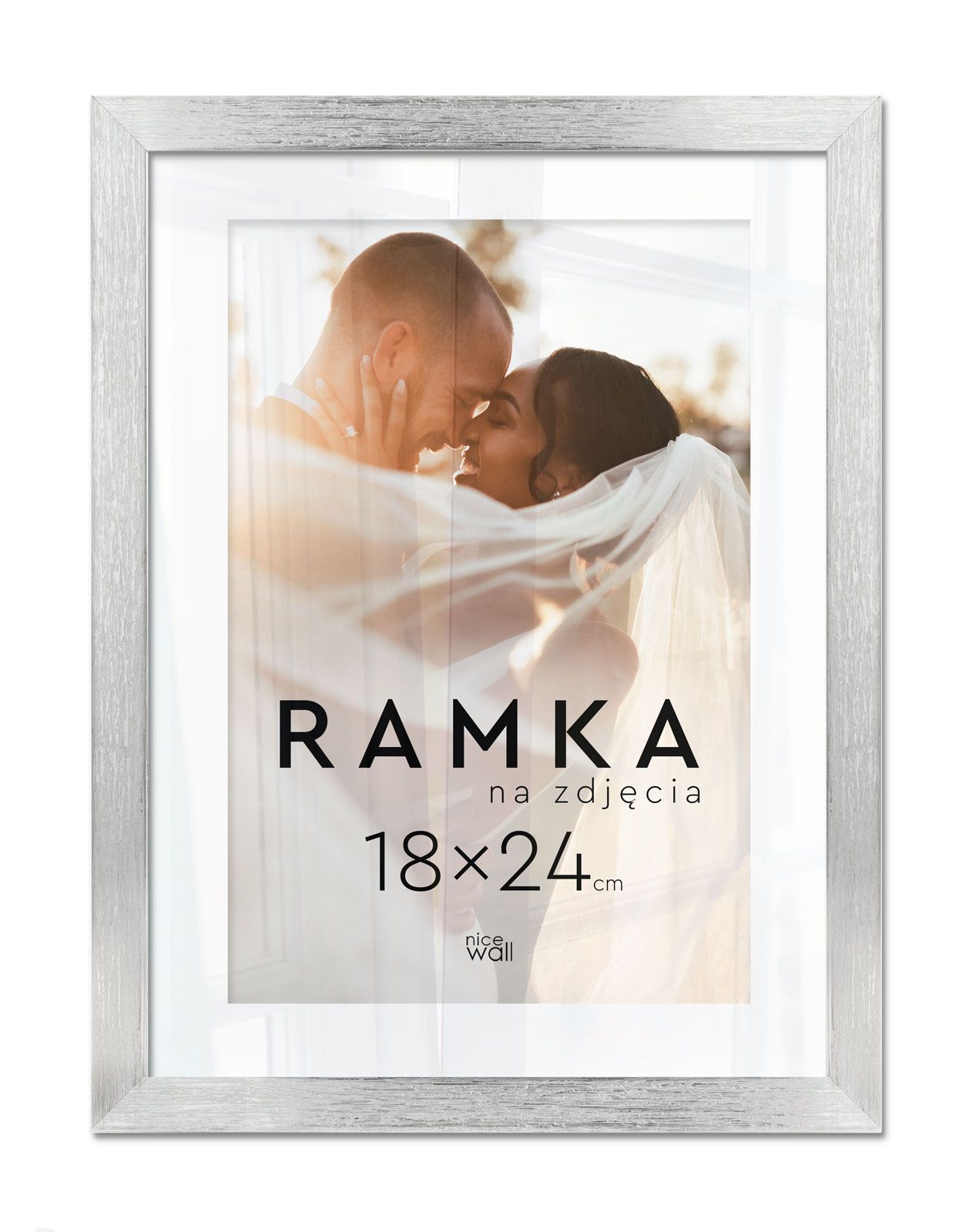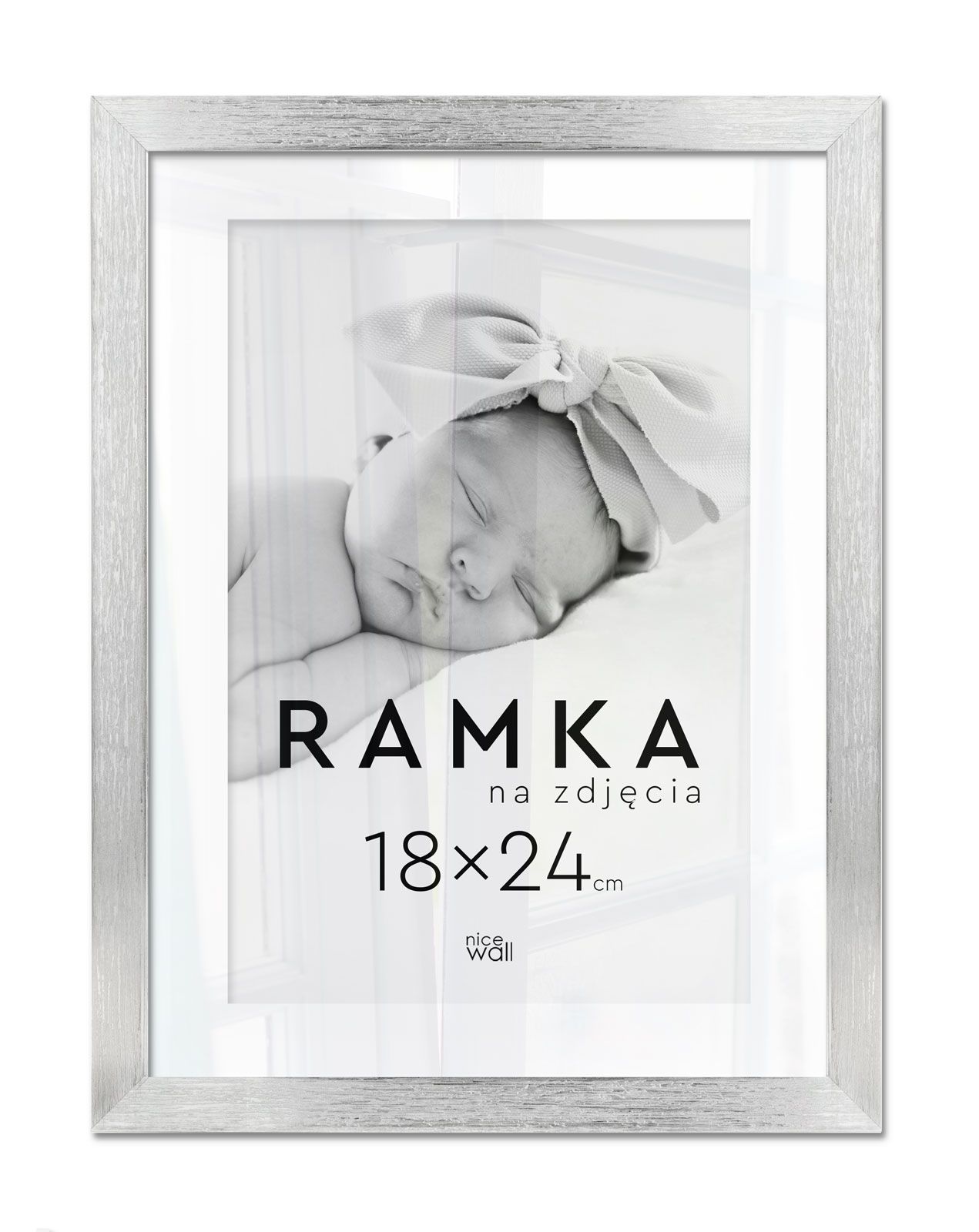Ramka na zdjęcia 18x24 cm Srebrna Eleganckie ramki do oprawy plakatów, zdjęć i rysunków. Wykonane zpłyty pilśniowej, polistyrenu i lekkiej, przejrzystej pleksy 1 mm. Ramę można powiesić w pionie lub poziomie. Każdy egzemplarz jest zafoliowany. Posiadającertyfikat FSC. Wyprodukowanew Polsce. Wymiary ramy: 18x24 cm. Wymiary profilu: front 1,5 cm, bok 1,3 cm,
