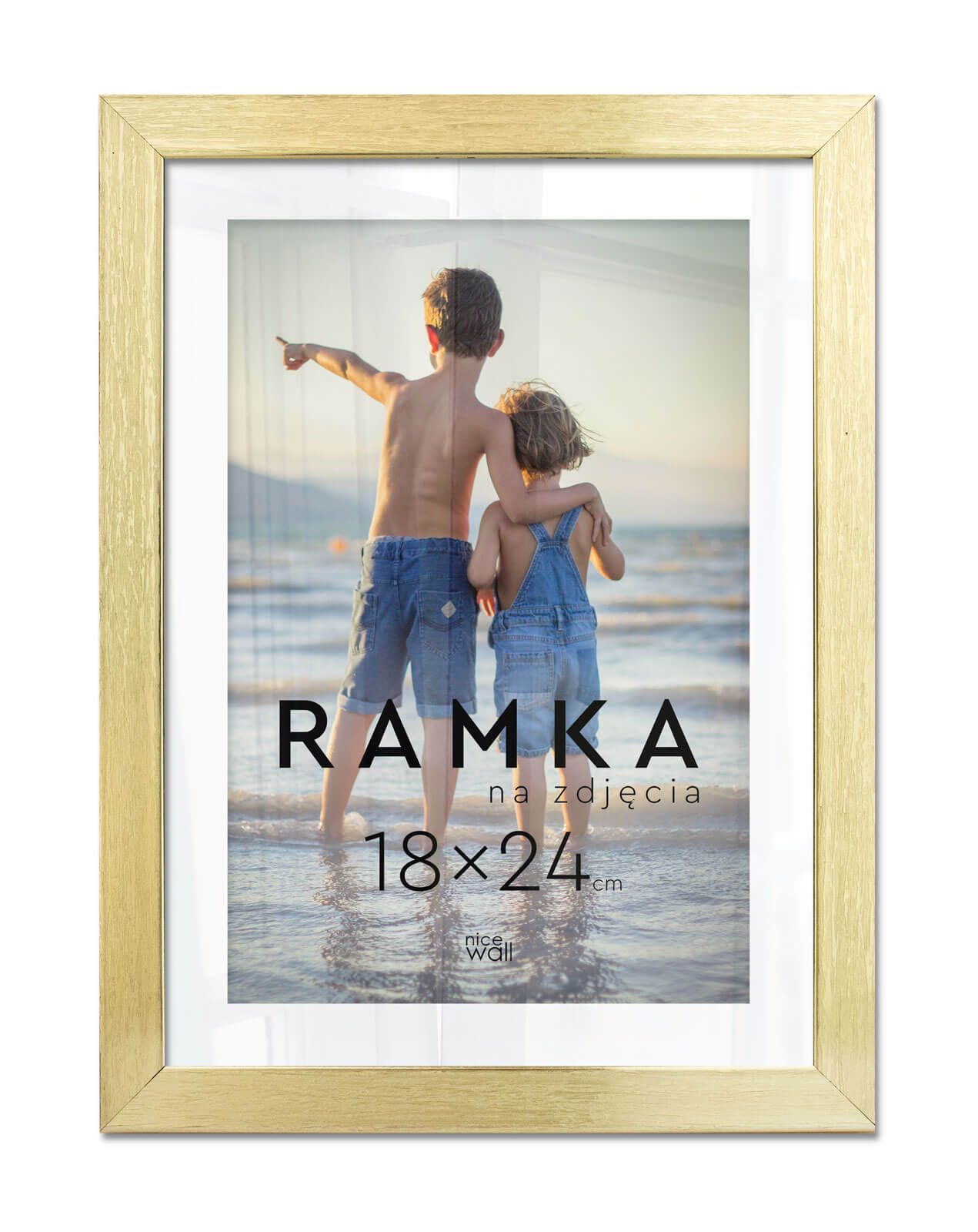 Ramka na zdjęcia 18x24 cm Złota Eleganckie ramki do oprawy plakatów, zdjęć i rysunków. Wykonane zpłyty pilśniowej, polistyrenu i lekkiej, przejrzystej pleksy 1 mm. Ramę można powiesić w pionie lub poziomie. Każdy egzemplarz jest zafoliowany. Posiadającertyfikat FSC. Wyprodukowanew Polsce. Wymiary ramy: 18x24 cm. Wymiary profilu: front 1,5 cm, bok 1,3 cm,