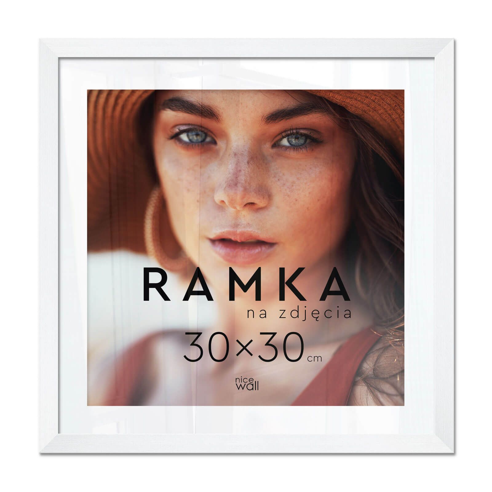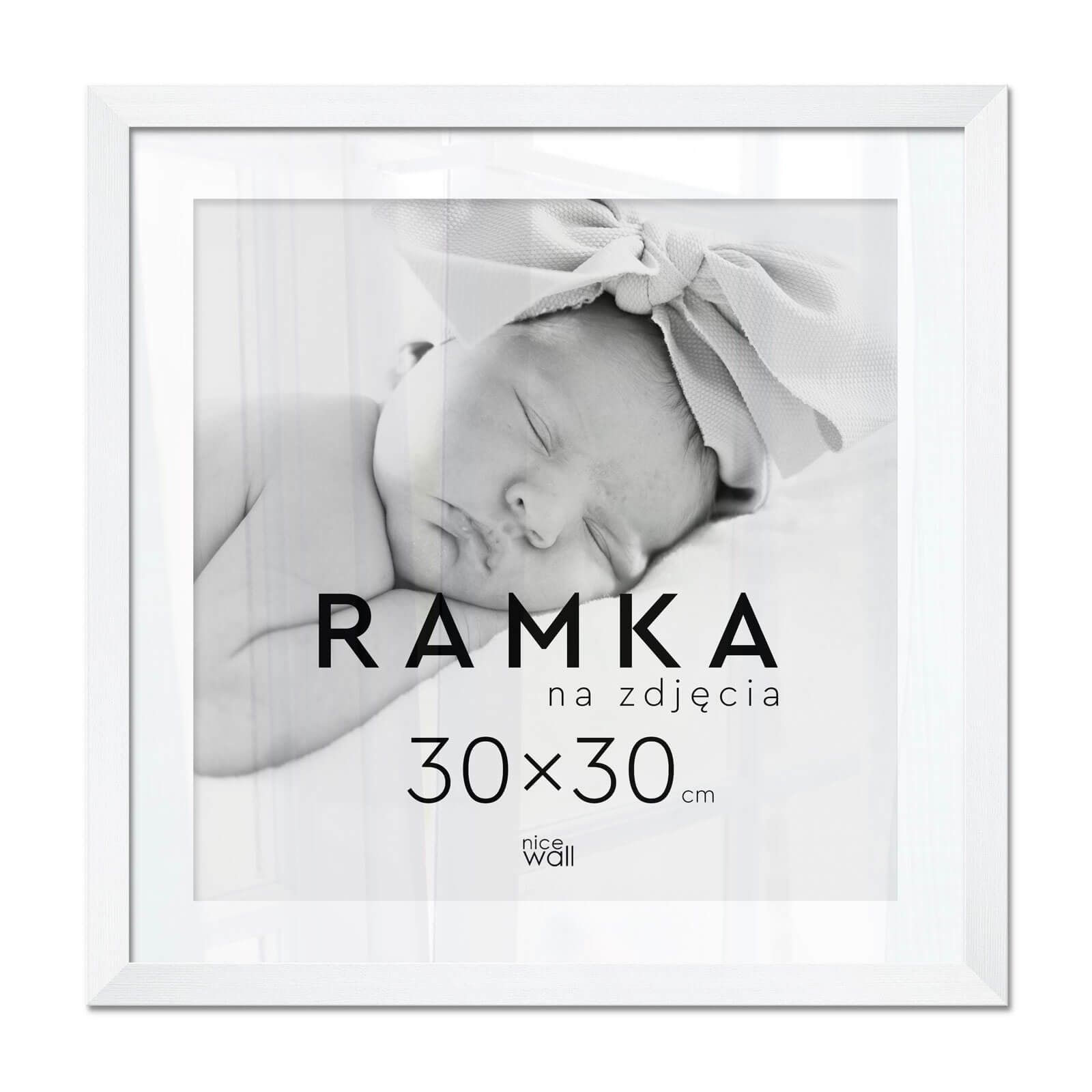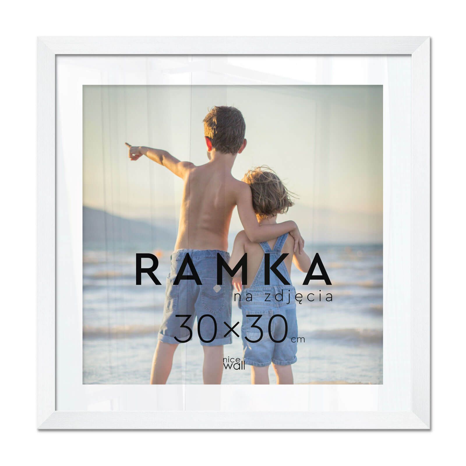 Ramka na zdjęcia 30x30 cm Biała Eleganckie ramki do oprawy plakatów, zdjęć i rysunków. Wykonane zpłyty pilśniowej, polistyrenu i lekkiej, przejrzystej pleksy 1 mm. Ramę można powiesić w pionie lub poziomie. Każdy egzemplarz jest zafoliowany. Posiadającertyfikat FSC. Wyprodukowanew Polsce. Wymiary ramy: 30x30 cm. Wymiary profilu: front 1,5 cm, bok 1,3 cm,