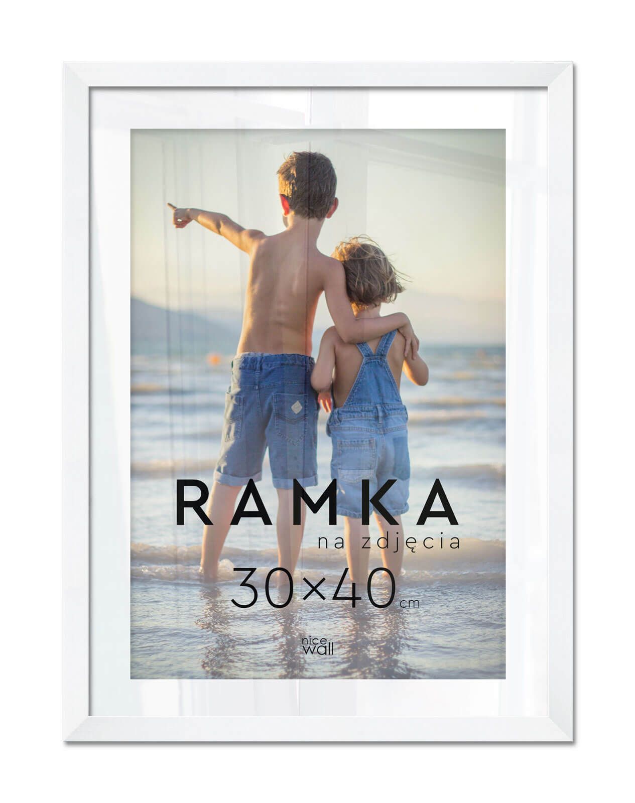 Ramka na zdjęcia 30x40 cm Biała Eleganckie ramki do oprawy plakatów, zdjęć i rysunków. Wykonane zpłyty pilśniowej, polistyrenu i lekkiej, przejrzystej pleksy 1 mm. Ramę można powiesić w pionie lub poziomie. Każdy egzemplarz jest zafoliowany. Posiadającertyfikat FSC. Wyprodukowanew Polsce. Wymiary ramy: 30x40 cm. Wymiary profilu: front 1,5 cm, bok 1,3 cm,