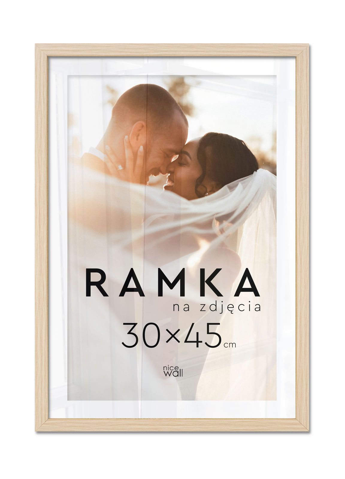 Ramka na zdjęcia 30x45 cm Buk Eleganckie ramki do oprawy plakatów, zdjęć i rysunków. Wykonane zpłyty pilśniowej, polistyrenu i lekkiej, przejrzystej pleksy 1 mm. Ramę można powiesić w pionie lub poziomie. Każdy egzemplarz jest zafoliowany. Posiadającertyfikat FSC. Wyprodukowanew Polsce. Wymiary ramy: 30x45 cm. Wymiary profilu: front 1,5 cm, bok 1,3 cm,