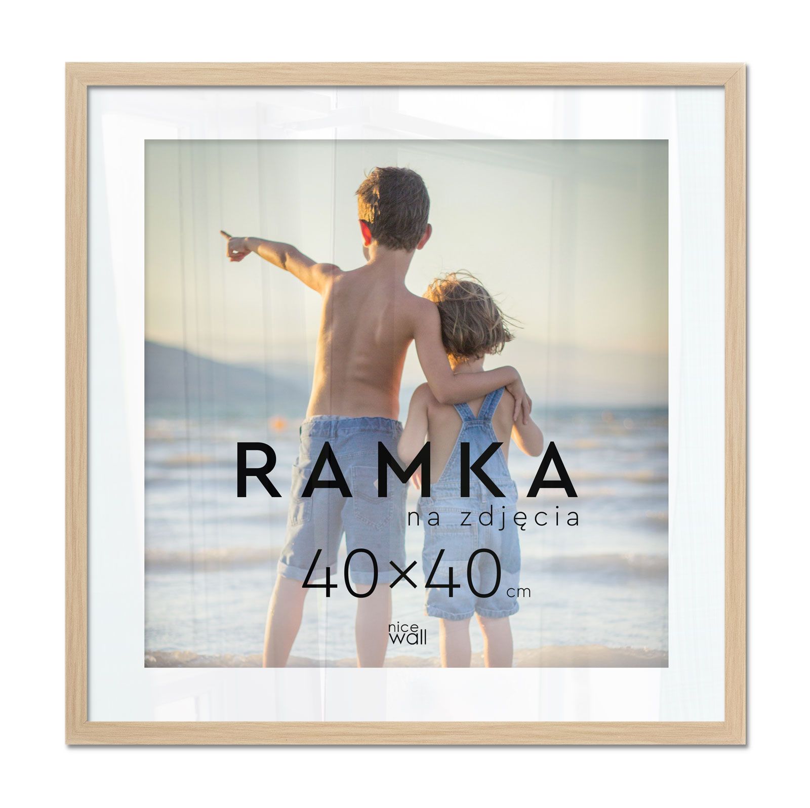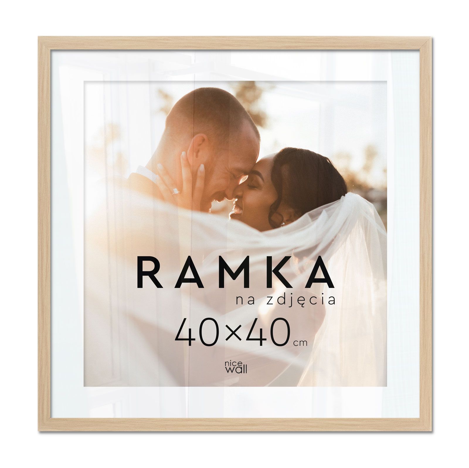 Ramka na zdjęcia 40x40 cm Buk Eleganckie ramki do oprawy plakatów, zdjęć i rysunków. Wykonane zpłyty pilśniowej, polistyrenu i lekkiej, przejrzystej pleksy 1 mm. Ramę można powiesić w pionie lub poziomie. Każdy egzemplarz jest zafoliowany. Posiadającertyfikat FSC. Wyprodukowanew Polsce. Wymiary ramy: 40x40 cm. Wymiary profilu: front 1,5 cm, bok 1,3 cm,