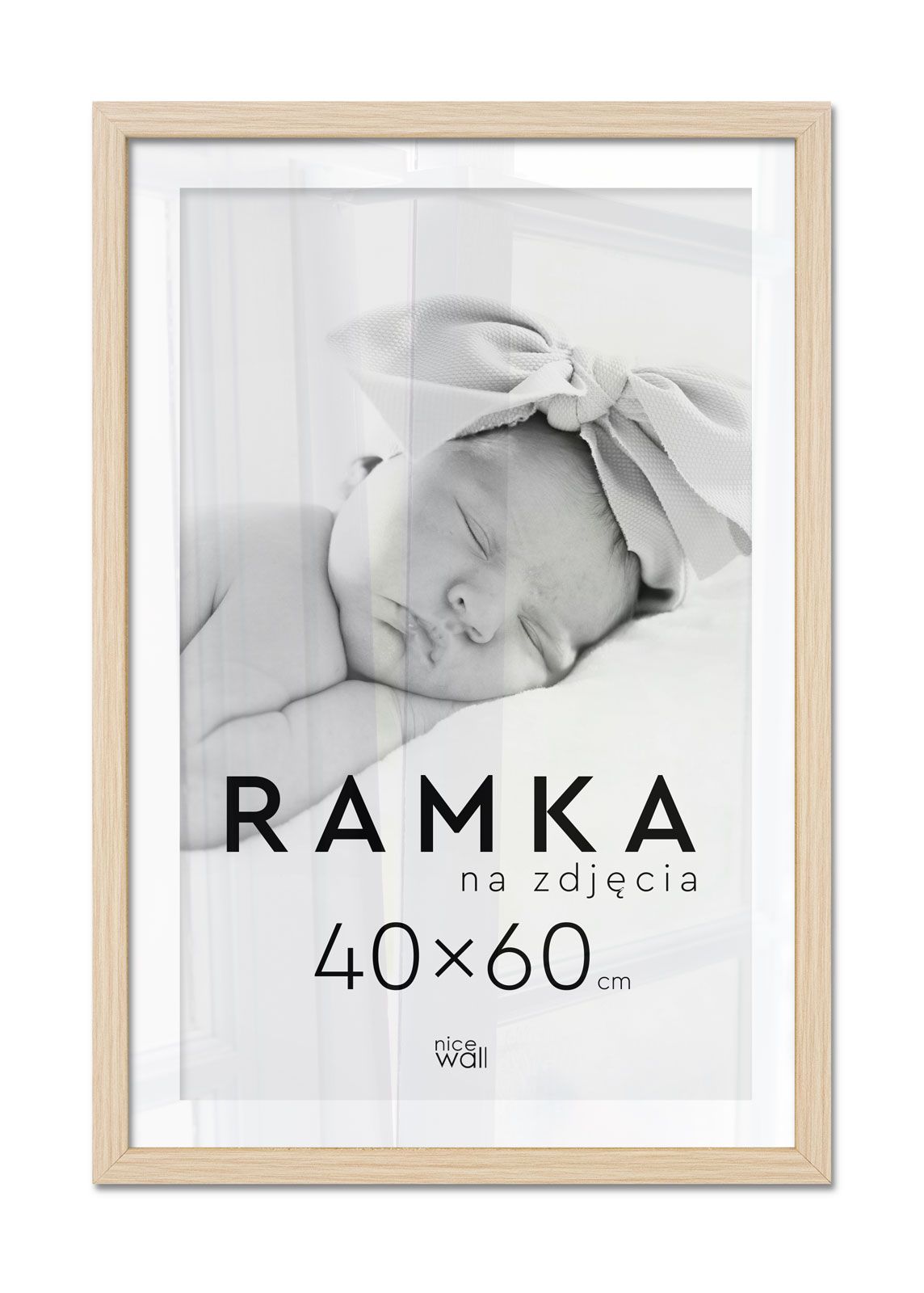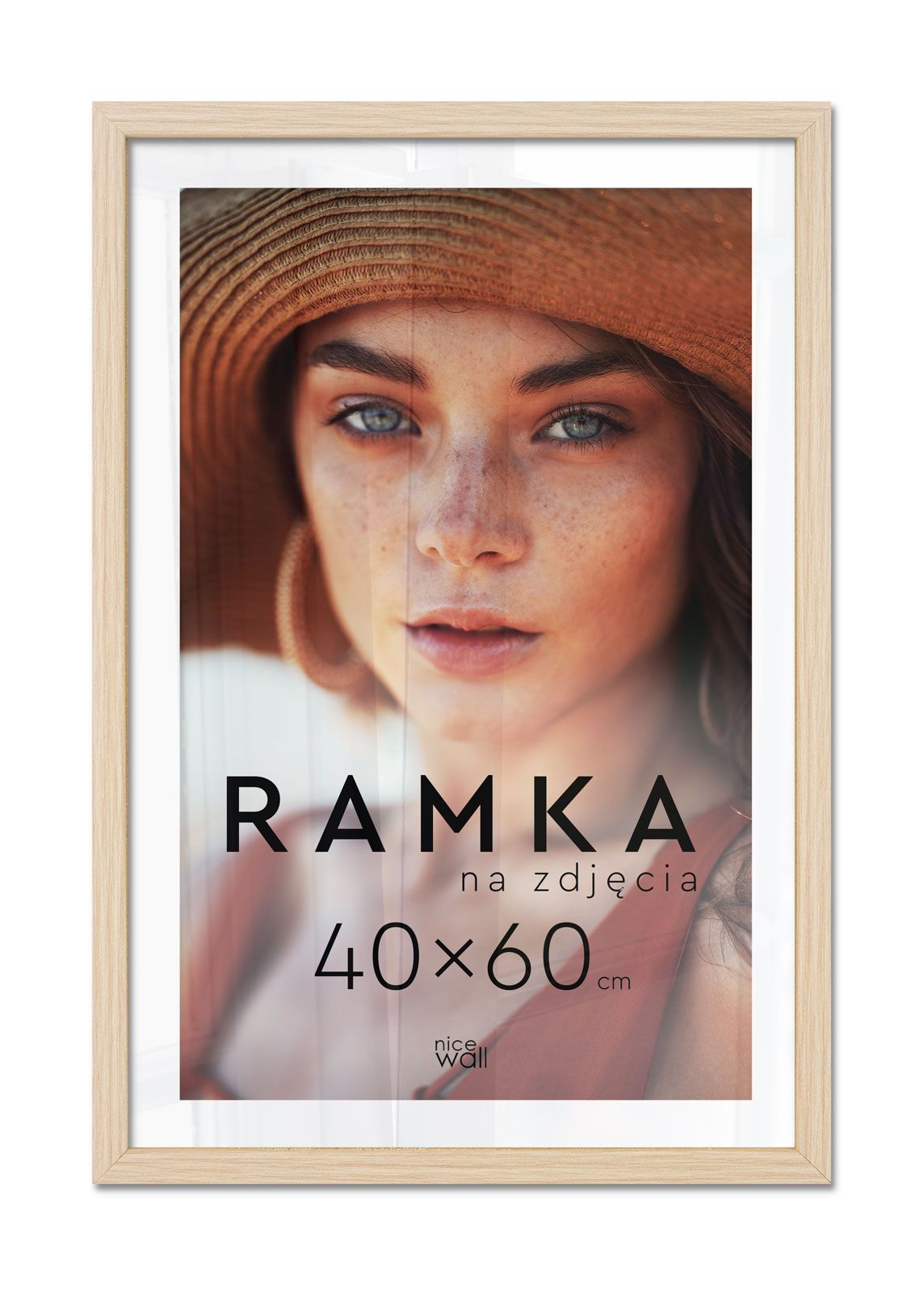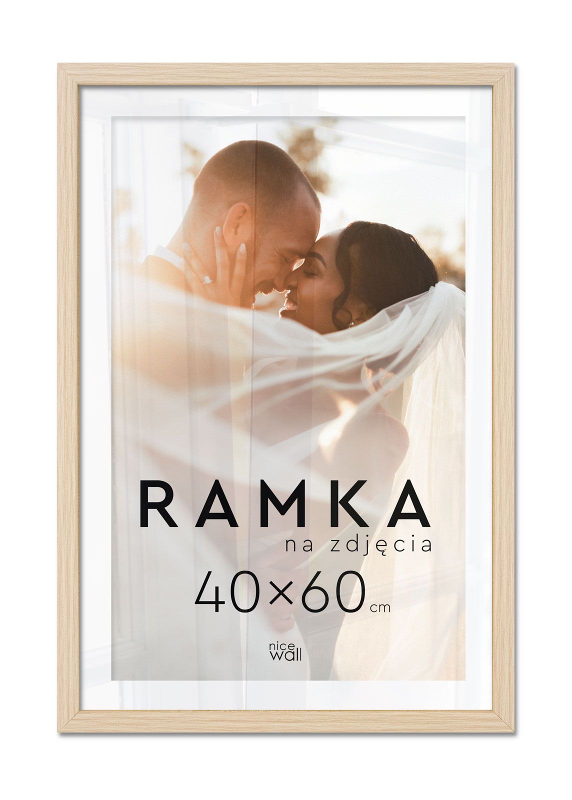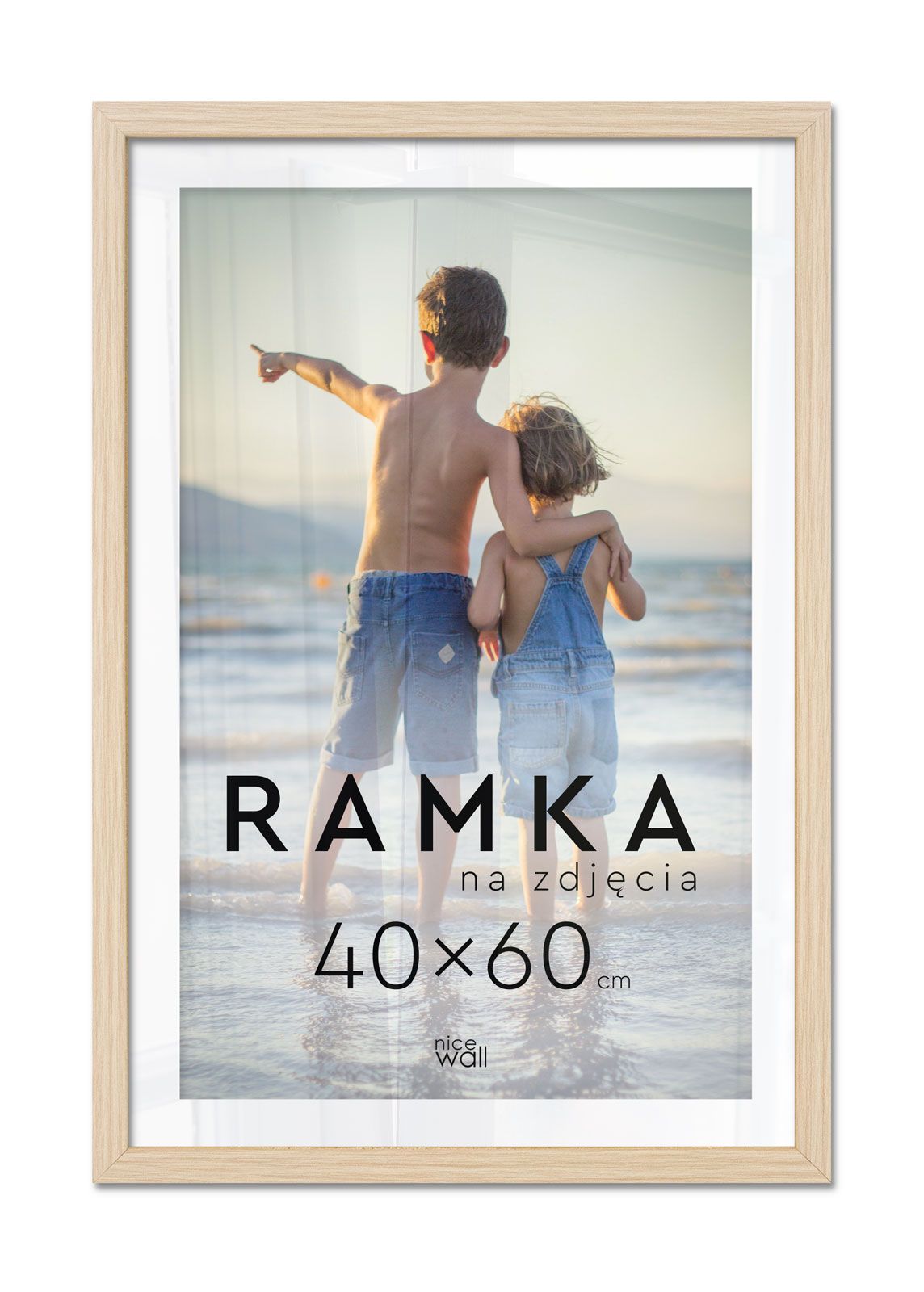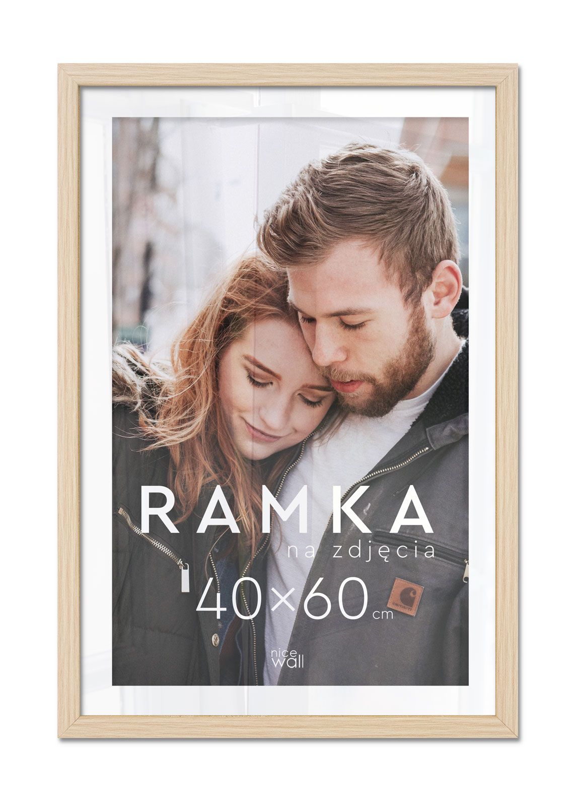 Ramka na zdjęcia 40x60 cm Buk Eleganckie ramki do oprawy plakatów, zdjęć i rysunków. Wykonane zpłyty pilśniowej, polistyrenu i lekkiej, przejrzystej pleksy 1 mm. Ramę można powiesić w pionie lub poziomie. Każdy egzemplarz jest zafoliowany. Posiadającertyfikat FSC. Wyprodukowanew Polsce. Wymiary ramy: 40x60 cm. Wymiary profilu: front 1,5 cm, bok 1,3 cm,