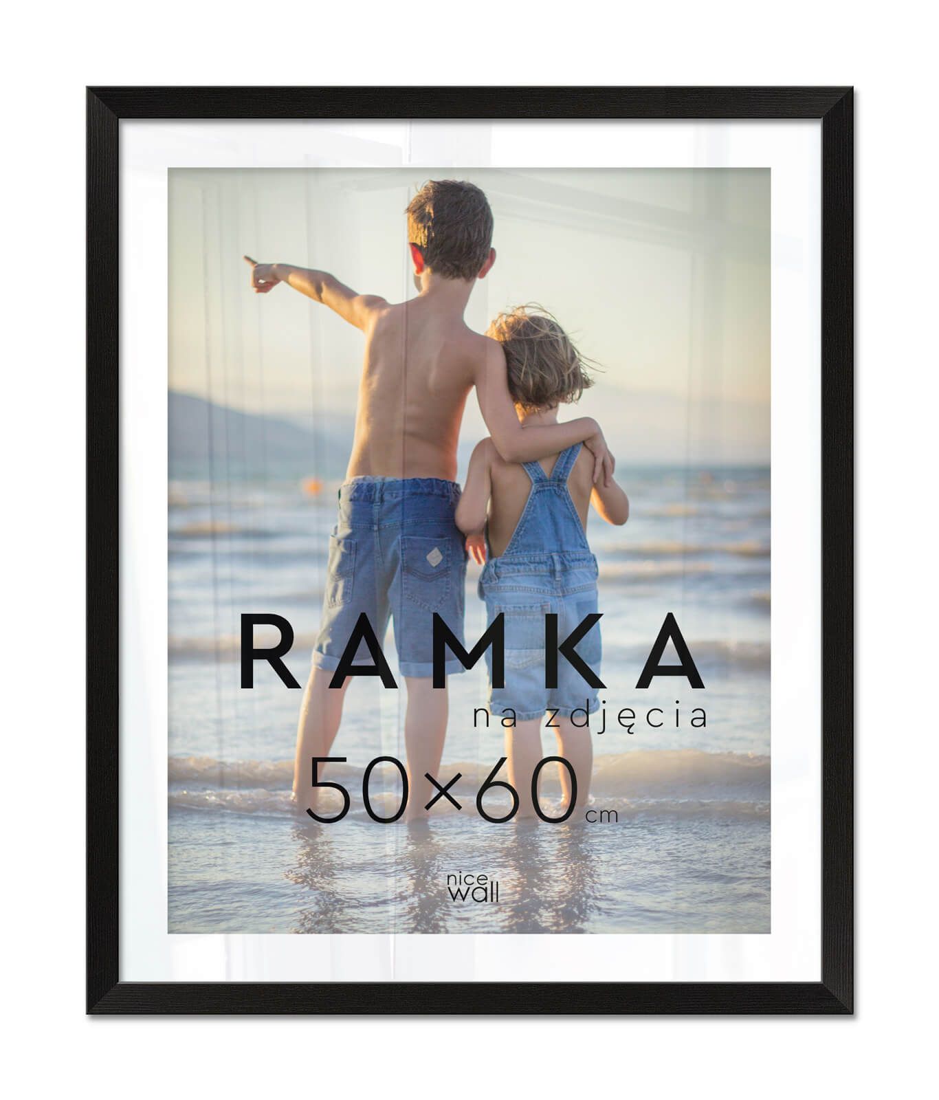 Ramka na zdjęcia 50x60 cm Czarna Eleganckie ramki do oprawy plakatów, zdjęć i rysunków. Wykonane zpłyty pilśniowej, polistyrenu i lekkiej, przejrzystej pleksy 1 mm. Ramę można powiesić w pionie lub poziomie. Każdy egzemplarz jest zafoliowany. Posiadającertyfikat FSC. Wyprodukowanew Polsce. Wymiary ramy: 50x60 cm. Wymiary profilu: front 1,5 cm, bok 1,3 cm,