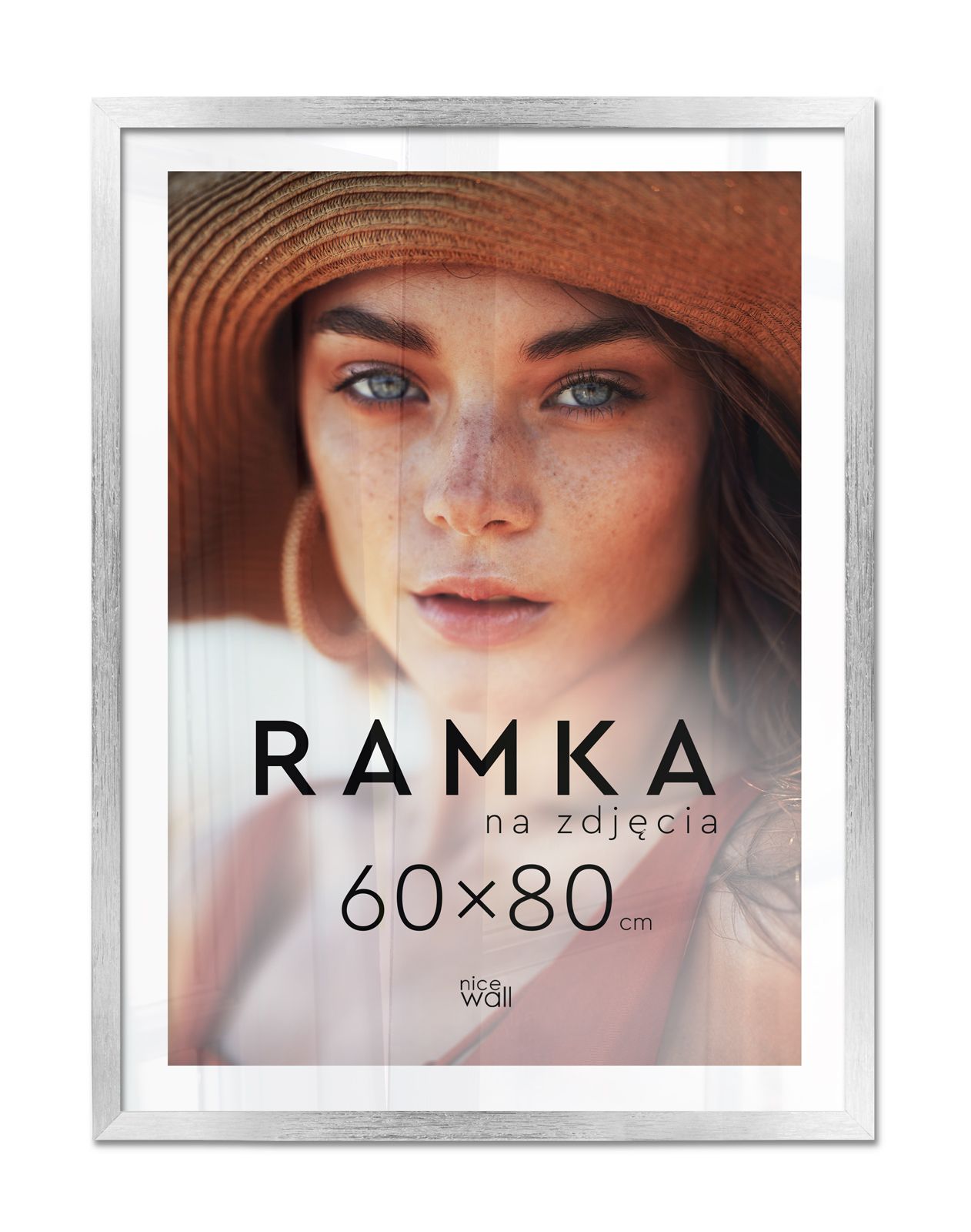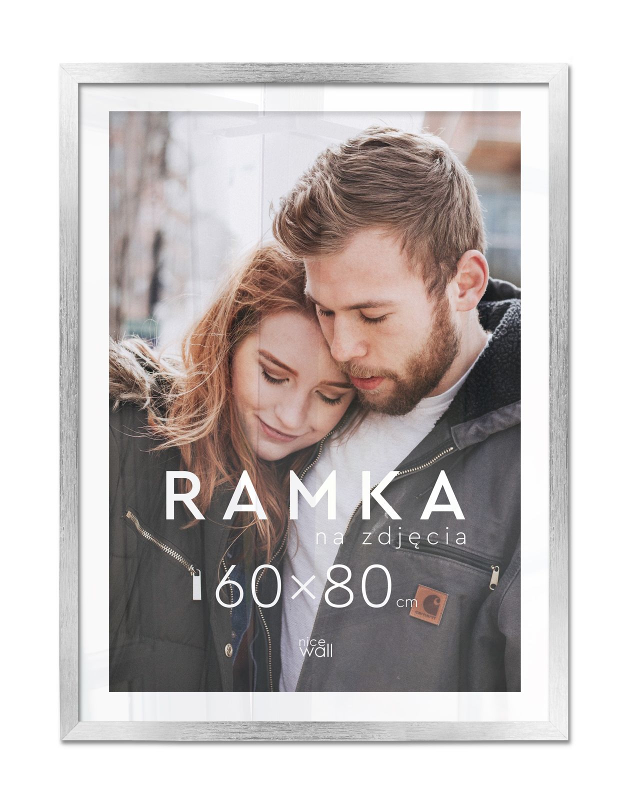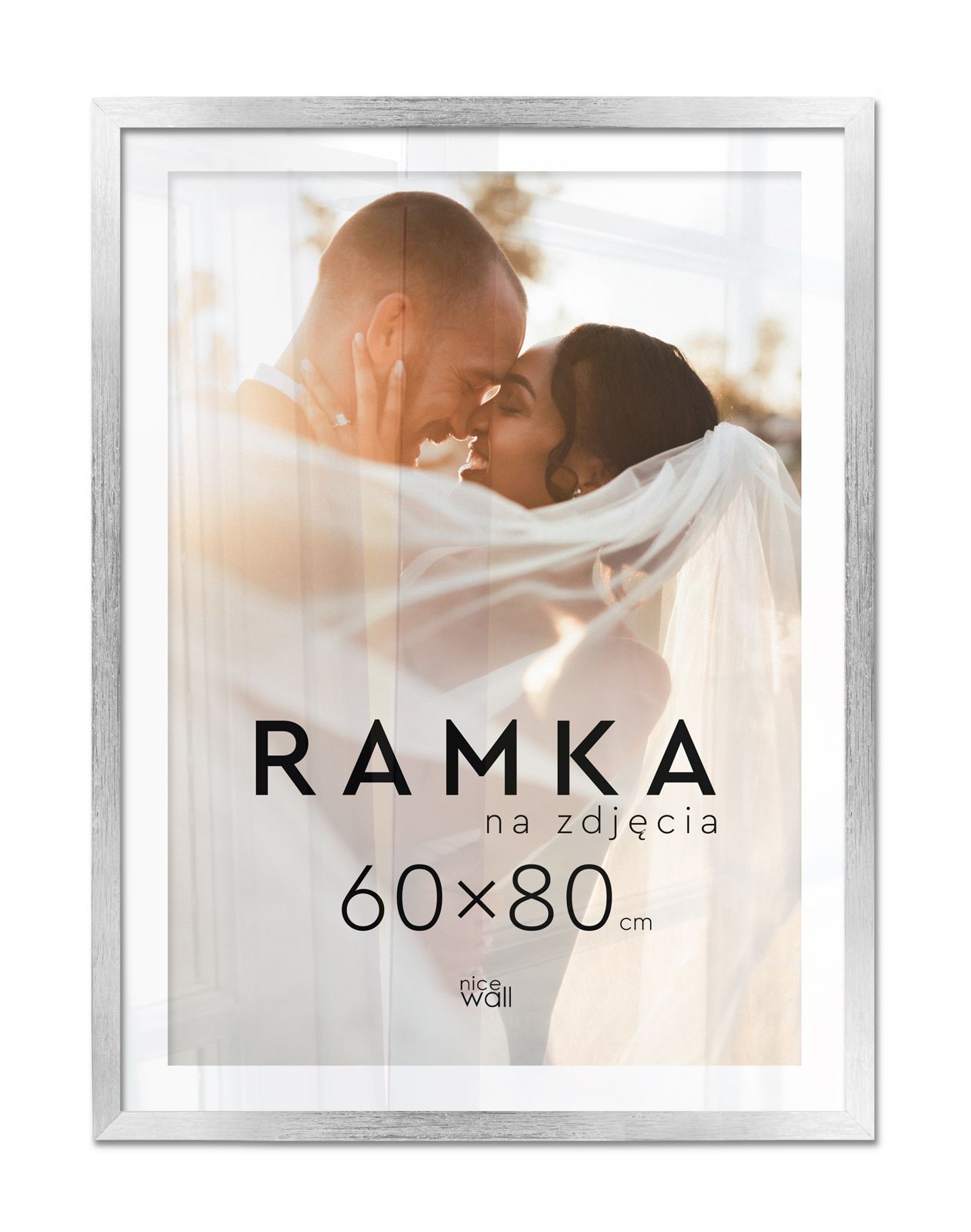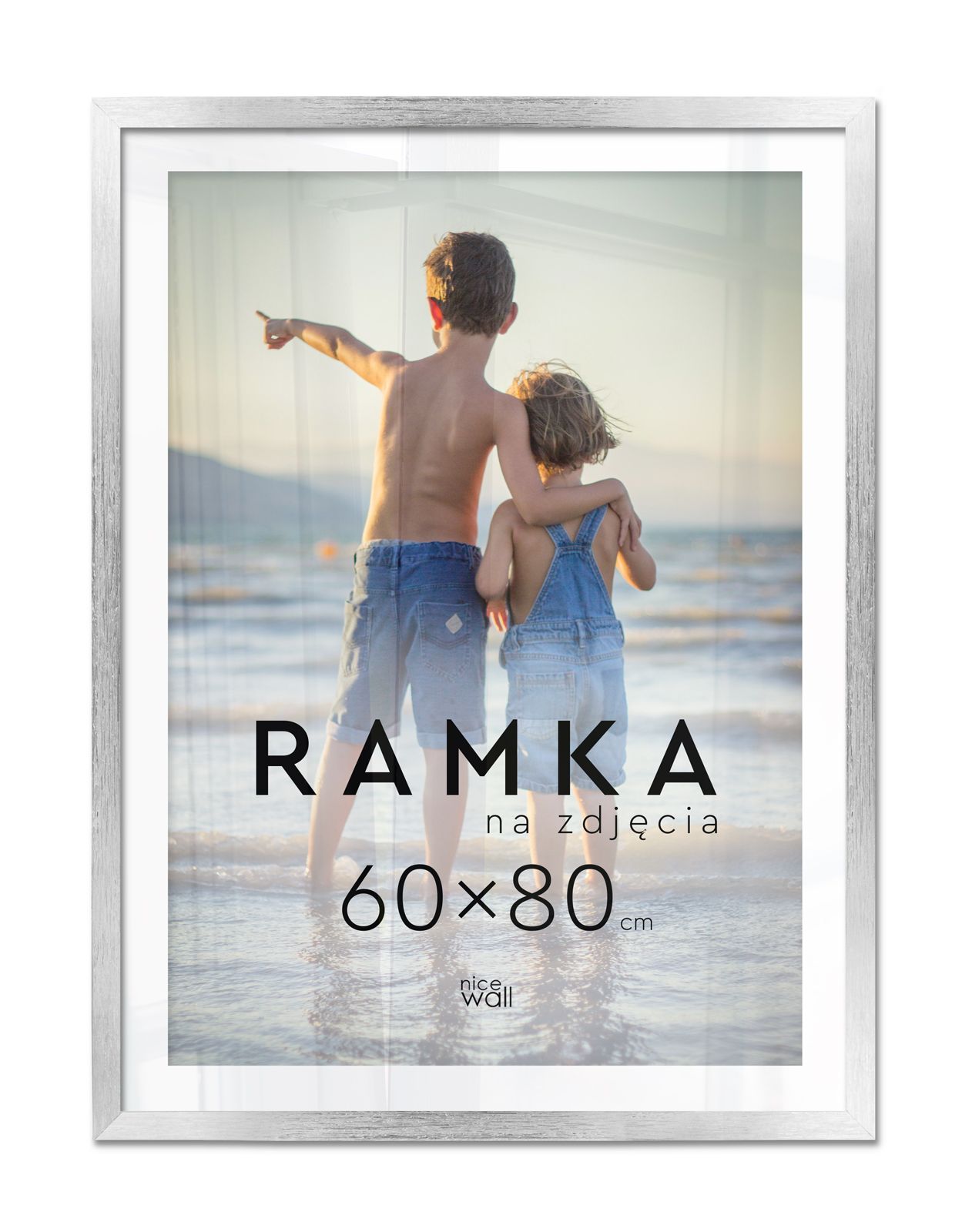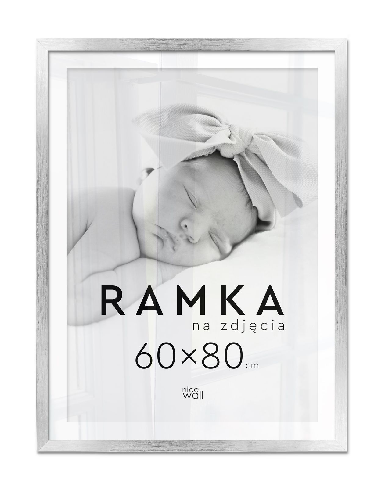 Ramka na zdjęcia 60x80 cm Srebrna Eleganckie ramki do oprawy plakatów, zdjęć i rysunków. Wykonane zpłyty pilśniowej, polistyrenu i lekkiej, przejrzystej pleksy 1 mm. Ramę można powiesić w pionie lub poziomie. Każdy egzemplarz jest zafoliowany. Posiadającertyfikat FSC. Wyprodukowanew Polsce. Wymiary ramy: 60x80 cm. Wymiary profilu: front 1,5 cm, bok 1,3 cm,