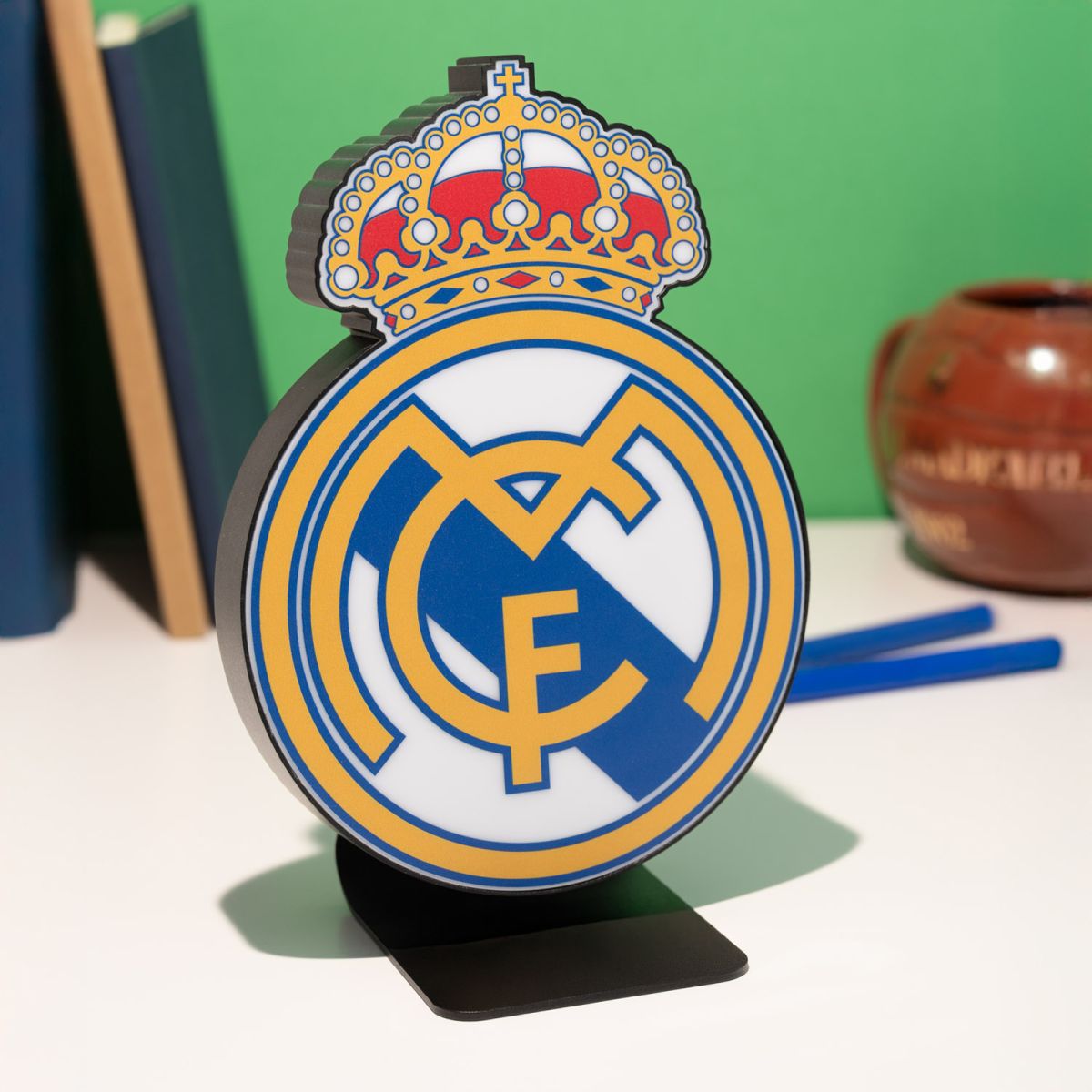 Real Madryt - lampa dekoracyjna LED Numer katalogowy: LAMP036 Producent: Erik Wymiary: 15x22,6x8 cm Lampa dekoracyjna z herbem Real Madryt została zaprojektowana jako funkcjonalny element oświetlenia oraz wyrazisty akcent wizualny. Kształt inspirowany oficjalnym herbem klubu sprawia, że lampa jest natychmiast rozpoznawalna i buduje sportowy klimat w pomieszczeniu. Delikatne światło LED sprawdzi się jako oświetlenie nastrojowe w pokoju, strefie kibica lub na biurku. Stabilna podstawa pozwala na wygodne ustawienie lampy na różnych powierzchniach. To praktyczny dodatek dla fanów Real Madryt, którzy chcą w prosty sposób podkreślić swoją pasję do futbolu. Szczegóły techniczne Rodzaj: lampa LED Zastosowanie: oświetlenie dekoracyjne Motyw: Real Madryt Zasilanie: USB