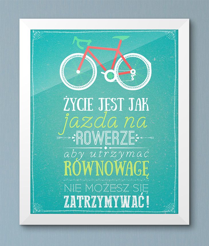 Plakat na ścianę zatytułowany Rower Szukasz oryginalnych, wykonanych z najwyższą starannością dekoracji? Drukujemy dla Ciebie na materiałach najlepszej jakości a nasi graficy ciągle przygotowują ciekawe, nowoczesne wzory plakatów. Plakat drukowany na grubym i mocnym papierze satynowym o gramaturze 220 g/m2 przez polskiego producenta. Dzięki temu umieszczony w ramie nie marszczy się i świetnie prezentuje przez długi czas. Powierzchnia plakatu jest matowa, zadrukowana w technologii druku cyfrowego co pozwoliło uzyskać głębokie nasycenie kolorów i niesamowitą ostrość obrazu. Wybierając ten produkt masz pewność, że otrzymasz fantastyczną jakość. Wszystkie plakaty z naszej oferty posiadają licencję, otrzymasz więc oryginalny produkt.