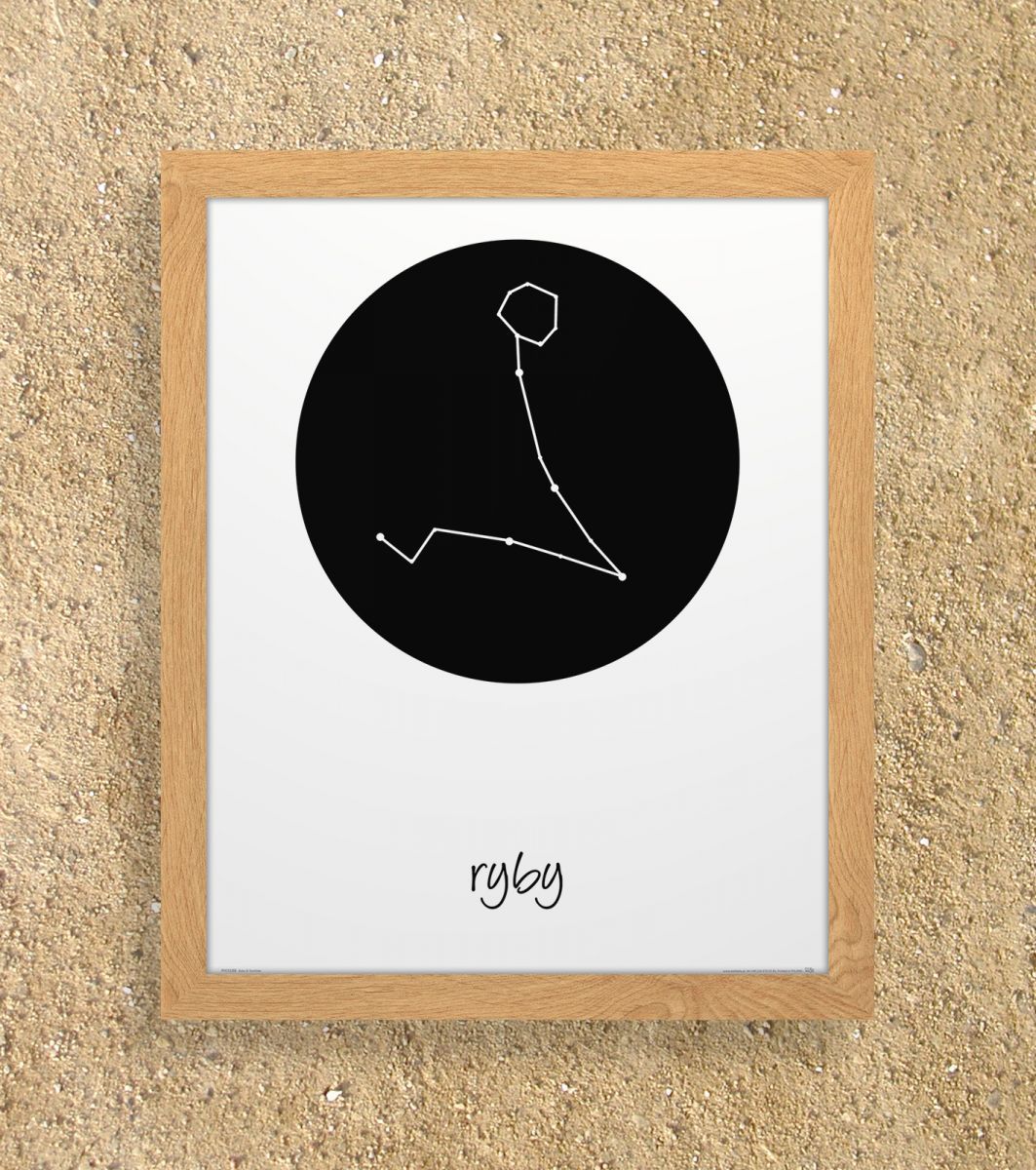 Plakat z mapą na ścianę, zatytułowany Ryby konstelacja w kole Ciekawy i oryginalny plakat na ścianę. Wyprodukowany na papierze o wysokiej gramaturze w cyfrowej jakości. Plakat wykonany przez polskiego producenta. Świetnie nadaje się do oprawienia w ramy lub antyramy. Specyfikacja papier satynowy 220g/m2 druk cyfrowy wymiary plakatu 40x50 cm