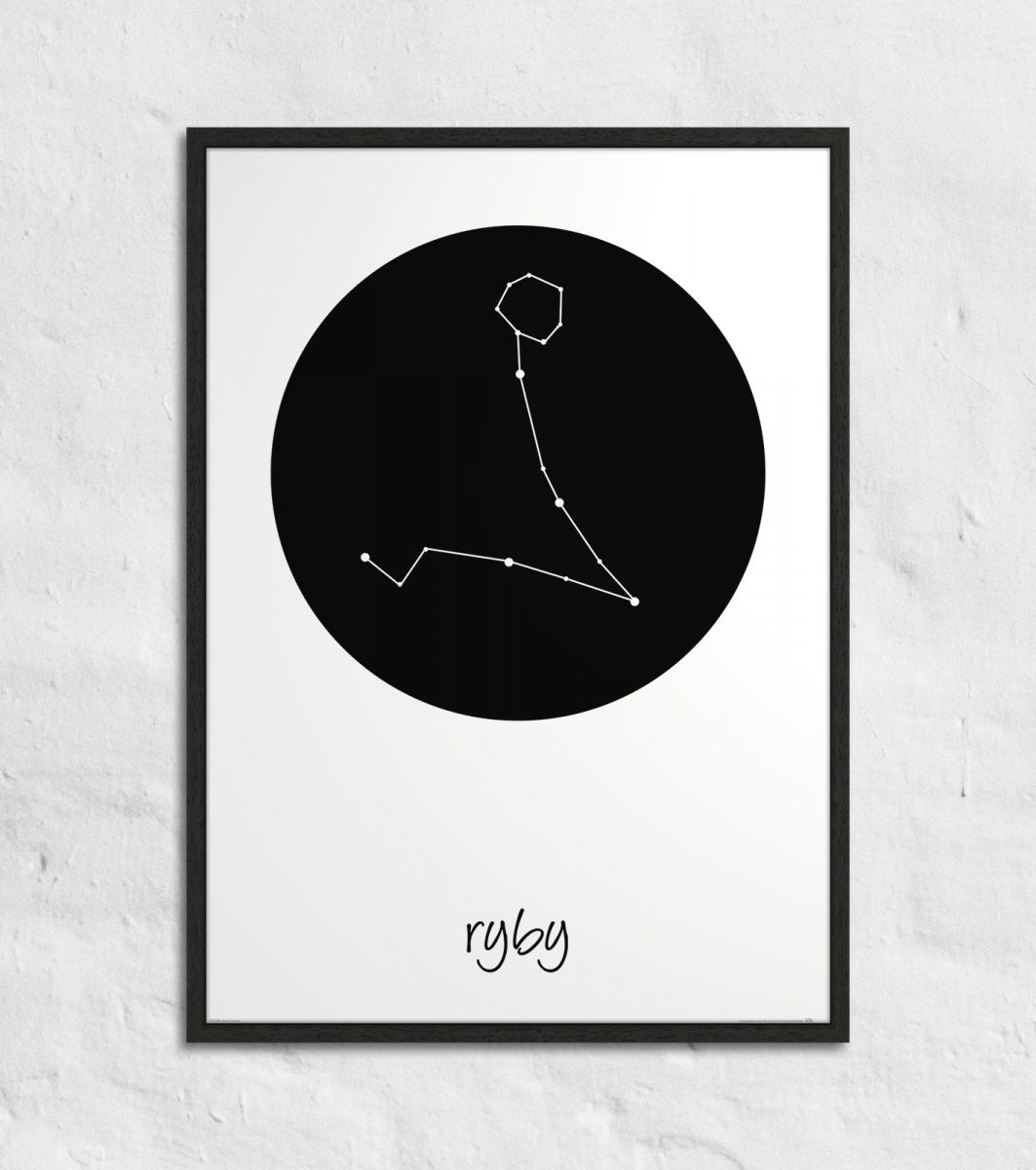 Plakat z mapą na ścianę, zatytułowany Ryby konstelacja w kole Ciekawy i oryginalny plakat na ścianę. Wyprodukowany na papierze o wysokiej gramaturze w cyfrowej jakości. Plakat wykonany przez polskiego producenta. Świetnie nadaje się do oprawienia w ramy lub antyramy. Specyfikacja papier satynowy 220g/m2 druk cyfrowy wymiary plakatu 50x70 cm