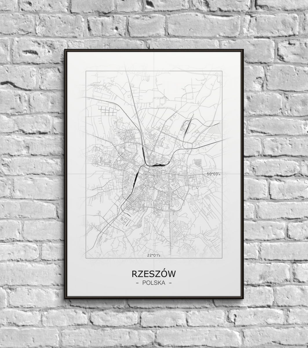Artystyczna mapa na ścianę, zatytułowana Rzeszów - Czarno biała mapa Ciekawy i oryginalny plakat na ścianę. Wyprodukowany na papierze o wysokiej gramaturze w cyfrowej jakości. Plakat wykonany przez polskiego producenta. Świetnie nadaje się do oprawienia w ramy lub antyramy. Specyfikacja papier satynowy 220g/m2 druk cyfrowy wymiary plakatu 50x70 cm
