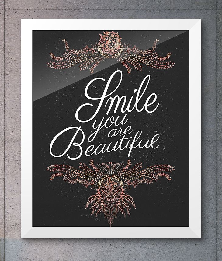Plakat na ścianę zatytułowany Smile Szukasz oryginalnych, wykonanych z najwyższą starannością dekoracji? Drukujemy dla Ciebie na materiałach najlepszej jakości a nasi graficy ciągle przygotowują ciekawe, nowoczesne wzory plakatów. Plakat drukowany na grubym i mocnym papierze satynowym o gramaturze 220 g/m2 przez polskiego producenta. Dzięki temu umieszczony w ramie nie marszczy się i świetnie prezentuje przez długi czas. Powierzchnia plakatu jest matowa, zadrukowana w technologii druku cyfrowego co pozwoliło uzyskać głębokie nasycenie kolorów i niesamowitą ostrość obrazu. Wybierając ten produkt masz pewność, że otrzymasz fantastyczną jakość. Wszystkie plakaty z naszej oferty posiadają licencję, otrzymasz więc oryginalny produkt.