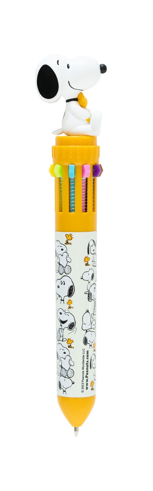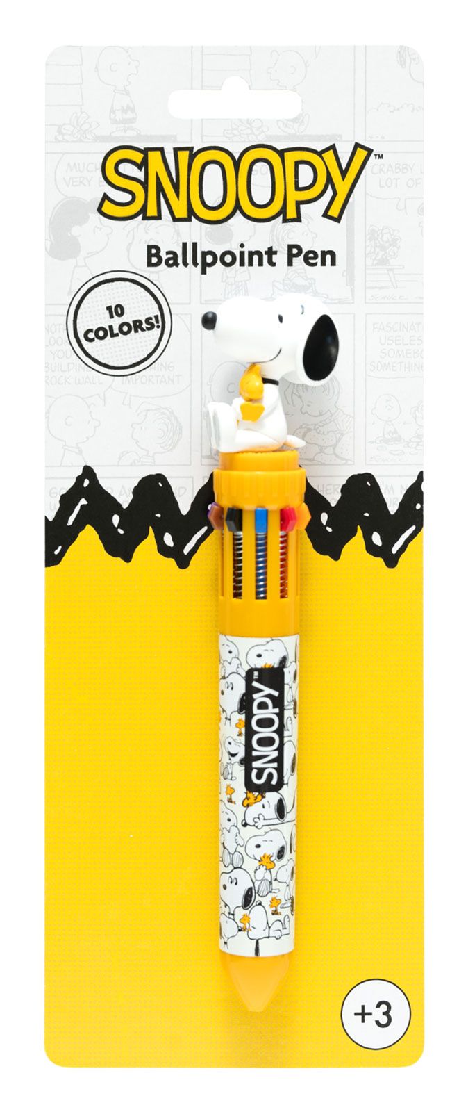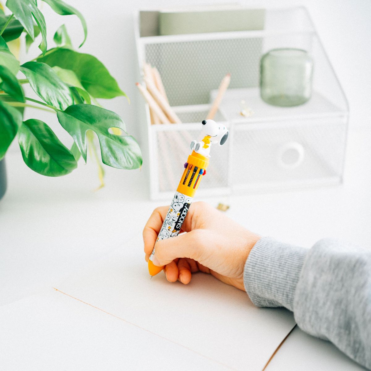 Wielokolorowy długopis Snoopy Lazy Days Automatyczny długopis wielokolorowy. Posiada 10 wkładów, m. in.: czarny, fioletowy, niebieski, czerwony, pomarańczowy i zielony. Idealny dla dzieci i młodzieży. Świetny pomysł na podarunek! Zestaw posiada oficjalną licencję producenta. Szczegóły techniczne: Marka: Grupoerik Wymiary opakowania:21 x 3 x 9 cm