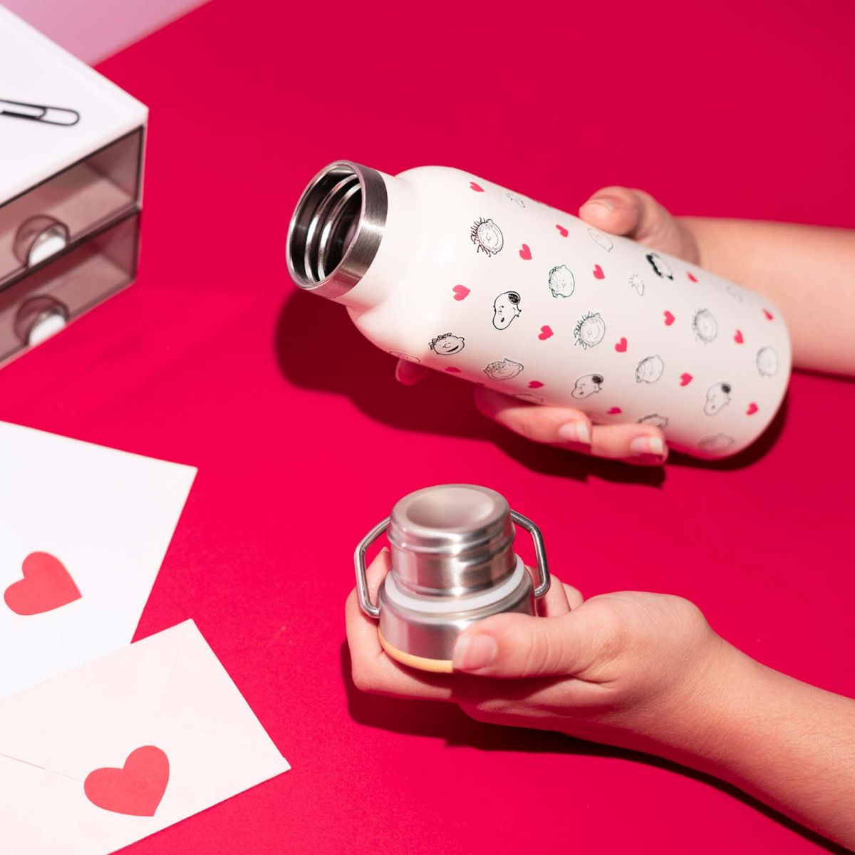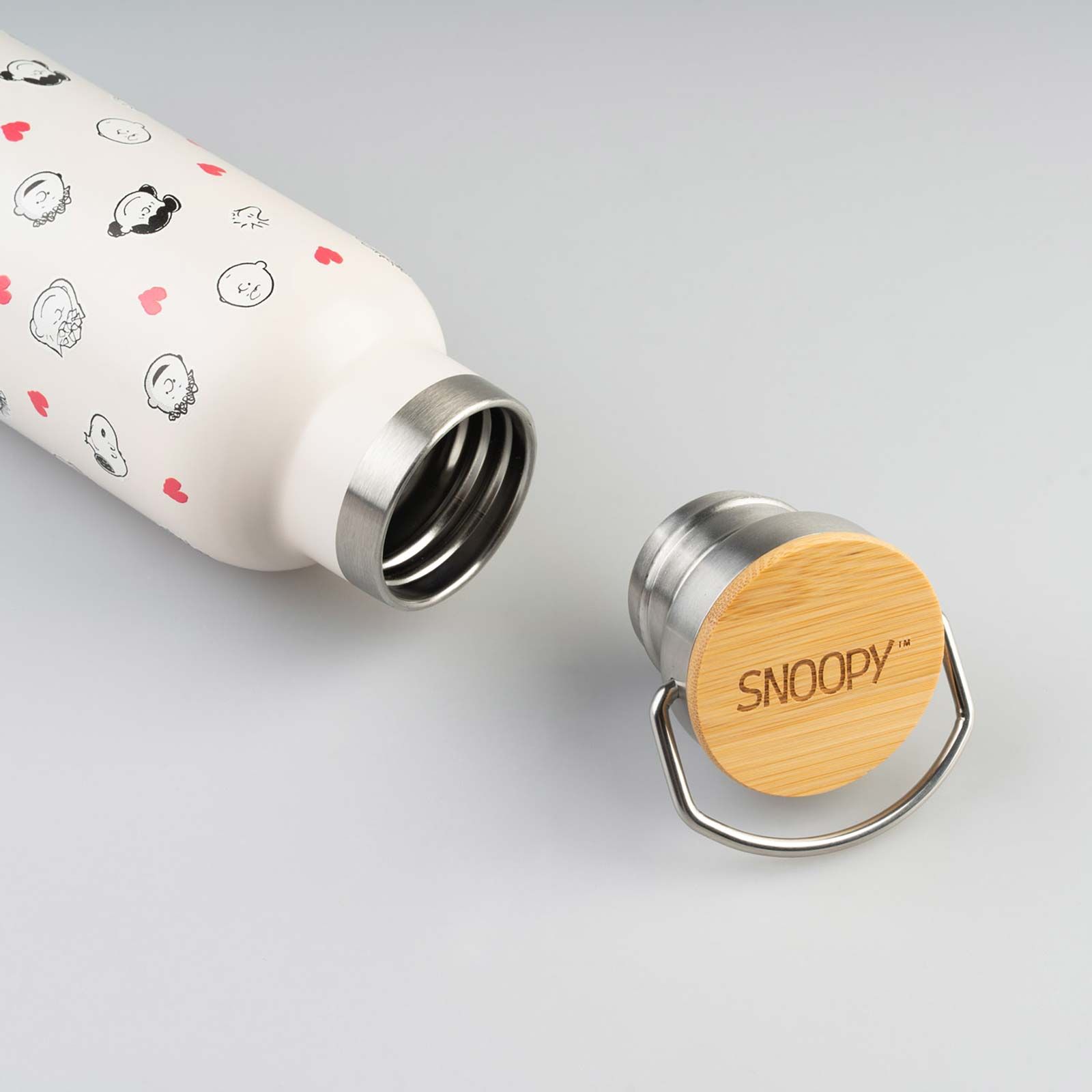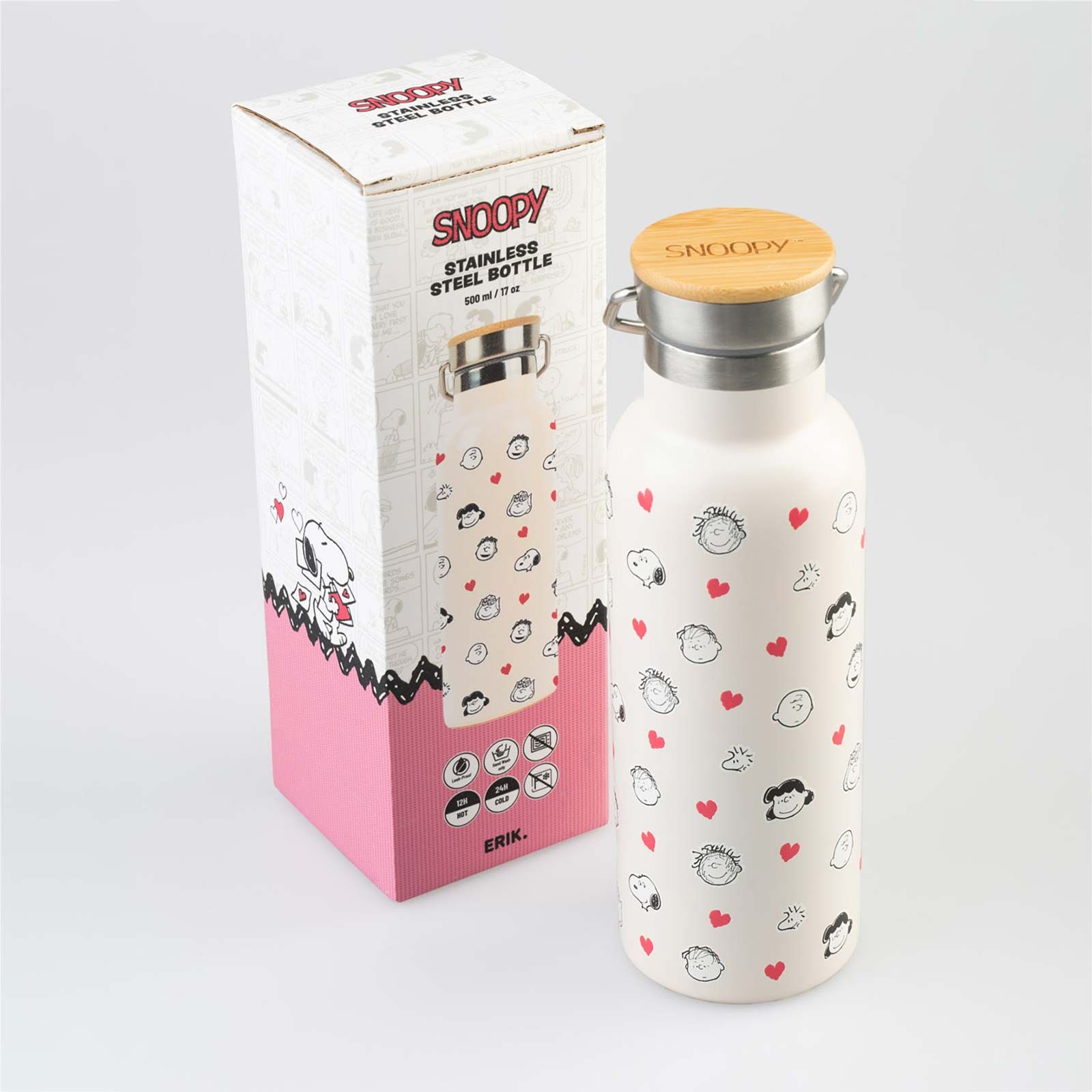 Snoopy Love Season - butelka termiczna Numer katalogowy: BMA07 Producent: Erik Wymiary: 7x23 cm Pojemność: 500 ml Butelka termiczna Snoopy Love Season została wykonana ze stali nierdzewnej i zaprojektowana z myślą o wygodnym, codziennym użytkowaniu w domu, pracy oraz poza domem. Dwuścienna konstrukcja pomaga utrzymać odpowiednią temperaturę napoju przez długi czas, dzięki czemu napoje ciepłe mogą pozostać ciepłe do 12 godzin, a zimne nawet do 24 godzin. Model wyposażono w szczelną drewnianą nakrętkę, która dobrze zabezpiecza zawartość, oraz metalowy uchwyt ułatwiający przenoszenie butelki w torbie lub w dłoni. Pojemność 500 ml i smukły format sprawiają, że butelka jest poręczna i wygodna w codziennym użyciu, a jednocześnie mieści solidną porcję napoju. Produkt nie zawiera BPA i jest bezpieczny do kontaktu z napojami, a dekoracyjny motyw Snoopy Love Season nadaje całości estetyczny, rozpoznawalny charakter. Szczegóły techniczne Rodzaj: butelka termiczna Materiał: stal nierdzewna, konstrukcja dwuścienna Nakrętka: szczelna, drewniana Uchwyt: metalowy Utrzymanie temperatury: ciepłe do 12 h, zimne do 24 h Bezpieczeństwo: BPA free Motyw: Snoopy Love Season Oryginalny produkt na oficjalnej licencji Peanuts.