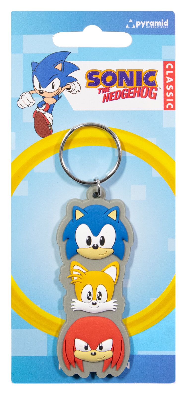 Sonic The Hedgehog Trio Stack - brelok Brelok składa się z gumowej zawieszki oraz metalowego oczka. Będzie kapitalnie prezentował się przy Twoich kluczach. Breloki to świetny pomysł na nagrodę w konkursie szkolnym czy zabawach. Gadżet posiada oficjalną licencję producenta. Przedstawiony brelok ma rozmiar ok. 4,5x6cm. Marka: Pyramid Posters