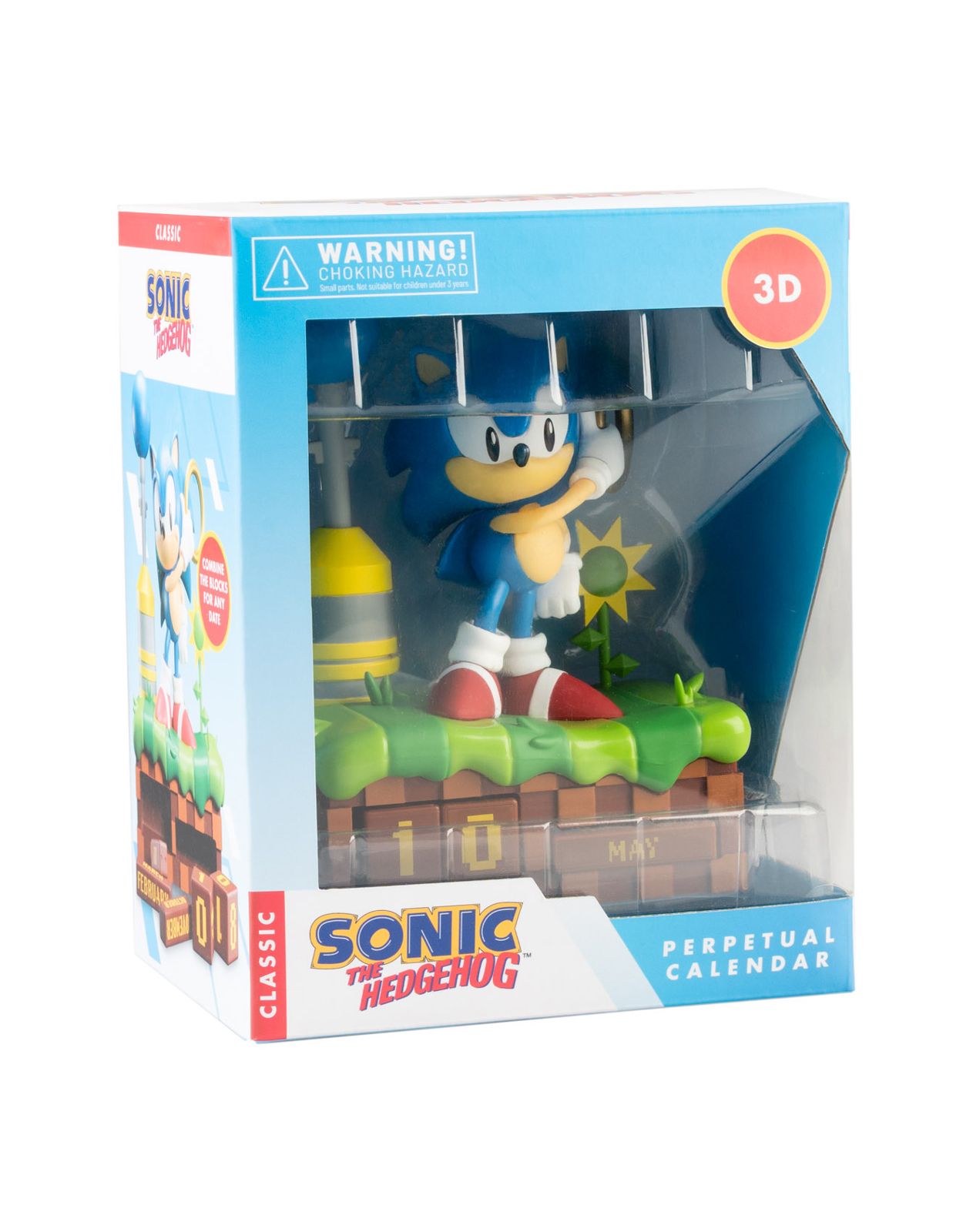 Sonic - kalendarz wieczny 3D Numer katalogowy: CP3D08 Producent: Erik Kalendarz wieczny 3D z motywem Sonica wykonany z PVC i ABS. Model z reliefowym wzorem posiada dwa bloki z dniami oraz trzy bloki z miesiącami umożliwiające konfigurację wszystkich dat w roku. Wymiary 12 x 16 x 8,5 cm. Szczegóły techniczne Wymiary: 12 x 16 x 8,5 cm Materiał: PVC, ABS Rodzaj: kalendarz wieczny 3D Bloki: 2 dzienne, 3 miesięczne Motyw: Sonic Oryginalny produkt na oficjalnej licencji Sonic, wyprodukowany przez Erik.
