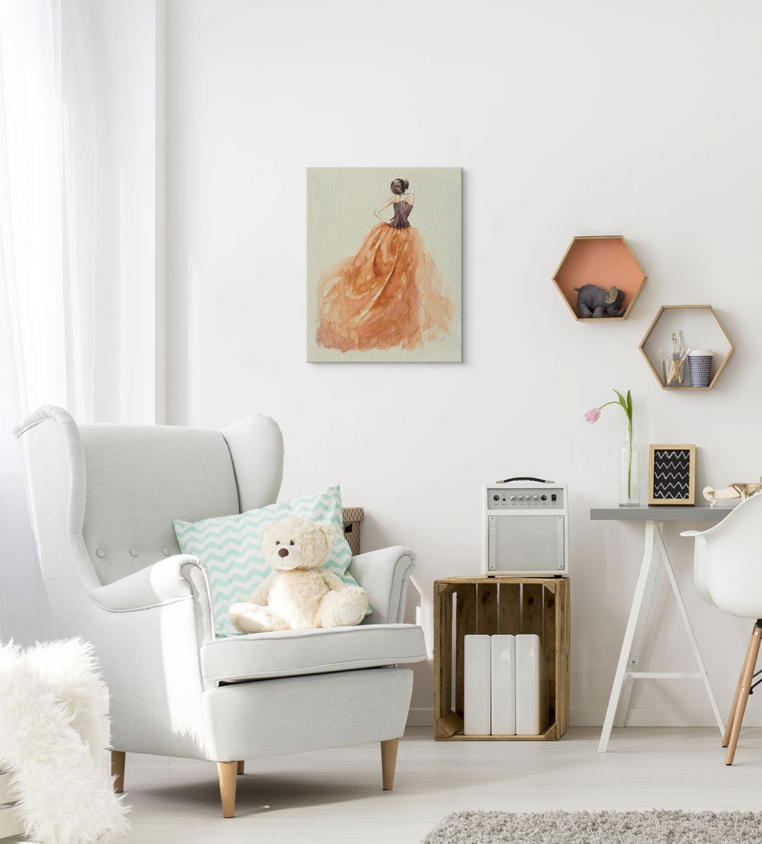 Obraz na ścianę noszący nazwę Sophia. Autorstwa: Louise Nisbet Szukasz oryginalnej, ekskluzywnej dekoracji na ścianę? Ten obraz jest dla Ciebie! nasycone kolory i doskonała jakość., obrazy charakteryzuje wysokie nasycenie barw i ostrość, nie sposób oderwać od nich wzrok. Kolory utrzymują się przez długie lata. Mocne bawełniane płótno wygląda naturalnie i oddaje charakter autentyczności obrazu.