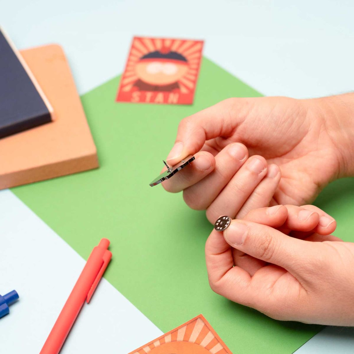 h Park - zestaw 4 przypinek Numer katalogowy: SET4P015 Producent: Erik Zestaw South Park od Erik zawiera cztery metalowe przypinki z bohaterami serialu: Cartmanem, Stanem, Kyleem i Kennym. Każda przypinka ma zapięcie motylkowe. Idealny drobiazg do ozdobienia plecaka lub kurtki. Wymiary opakowania 11,5x2x15 cm. Szczegóły techniczne Wymiary opakowania: 11,5x2x15 cm Zawartość: 4 metalowe przypinki Zapięcie: motylkowe Motyw: South Park Producent: Erik Oryginalny produkt na oficjalnej licencji South Park, wyprodukowany przez Erik.