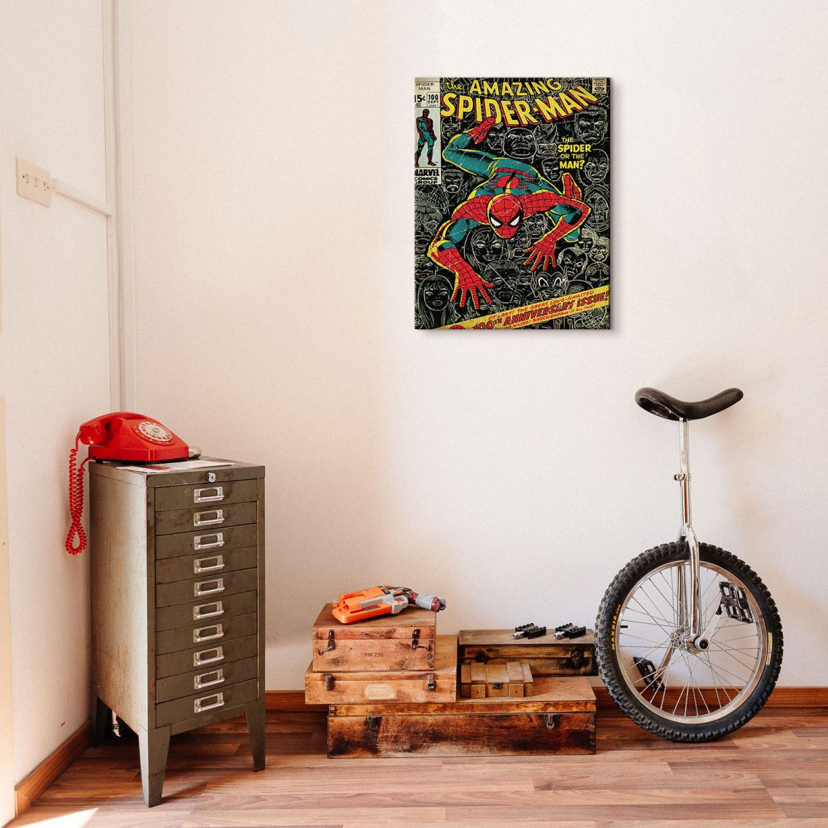 Obraz na ścianę noszący nazwę Spider-Man (100th Anniversary). Autorstwa: nieznany Szukasz oryginalnego obrazu na ścianę? Wybierz jeden z naszej kolekcji! trwałe kolory i fantastyczna jakość., obrazy charakteryzuje wysokie nasycenie barw i ostrość, nie sposób oderwać od nich wzrok. Obrazy są ostre a ich barwy maksymalnie nasycone co gwarantuje genialny efekt na ścianie. Bawełniane płótno wysokiej jakości gwarantuje świetne odwzorowanie i trwałość obrazu.