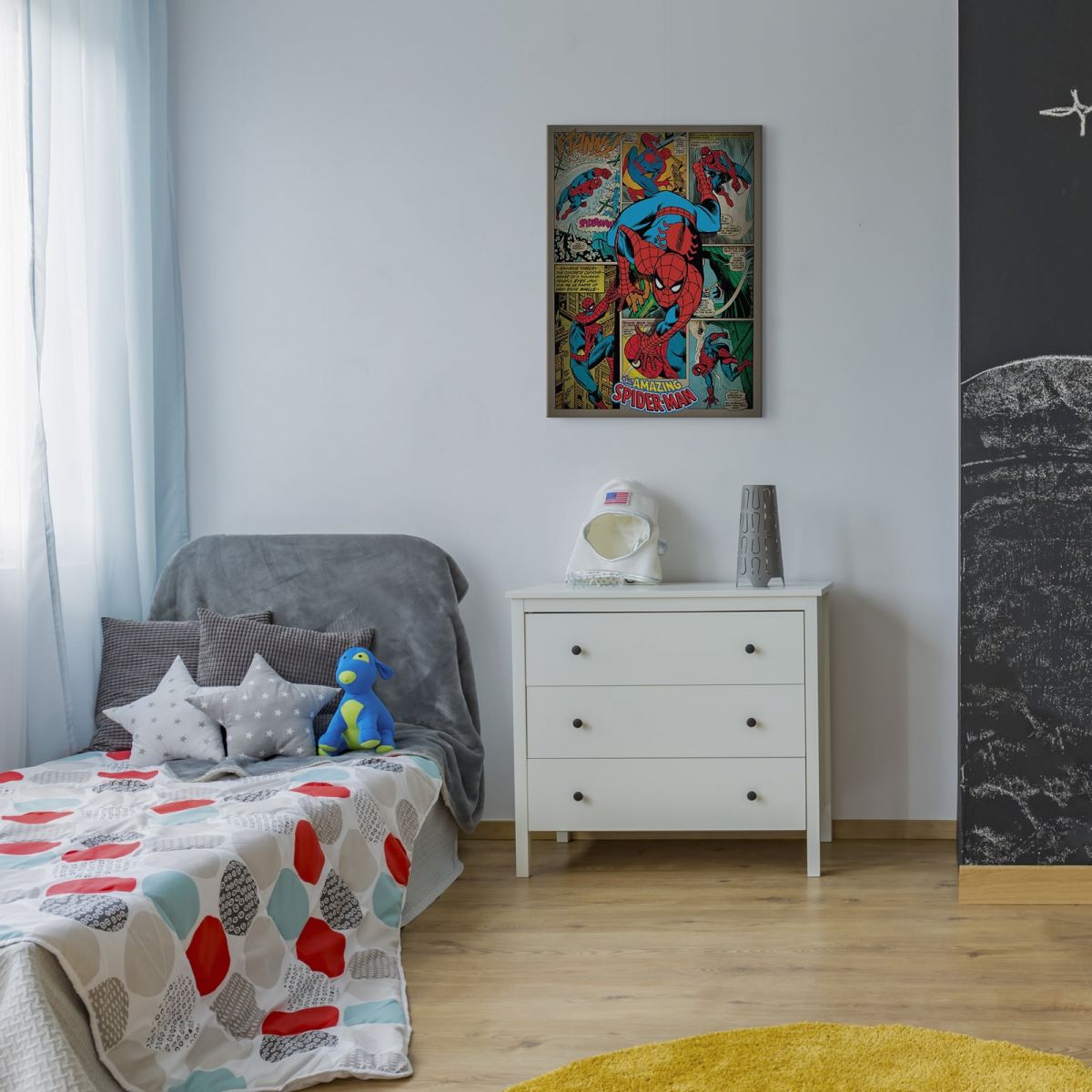 Obraz na ścianę noszący nazwę Spiderman (Retro). Szukasz oryginalnej, ekskluzywnej dekoracji na ścianę? Ten obraz jest dla Ciebie! trwałe kolory i fantastyczna jakość., obrazy charakteryzuje wysokie nasycenie barw i ostrość, nie sposób oderwać od nich wzrok. Kolory utrzymują się przez długie lata. Mocne bawełniane płótno wygląda naturalnie i oddaje charakter autentyczności obrazu.