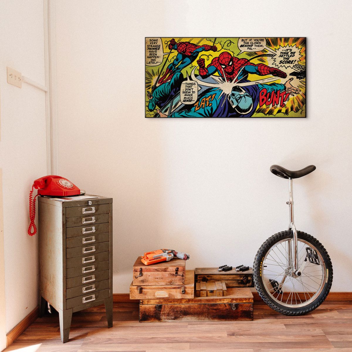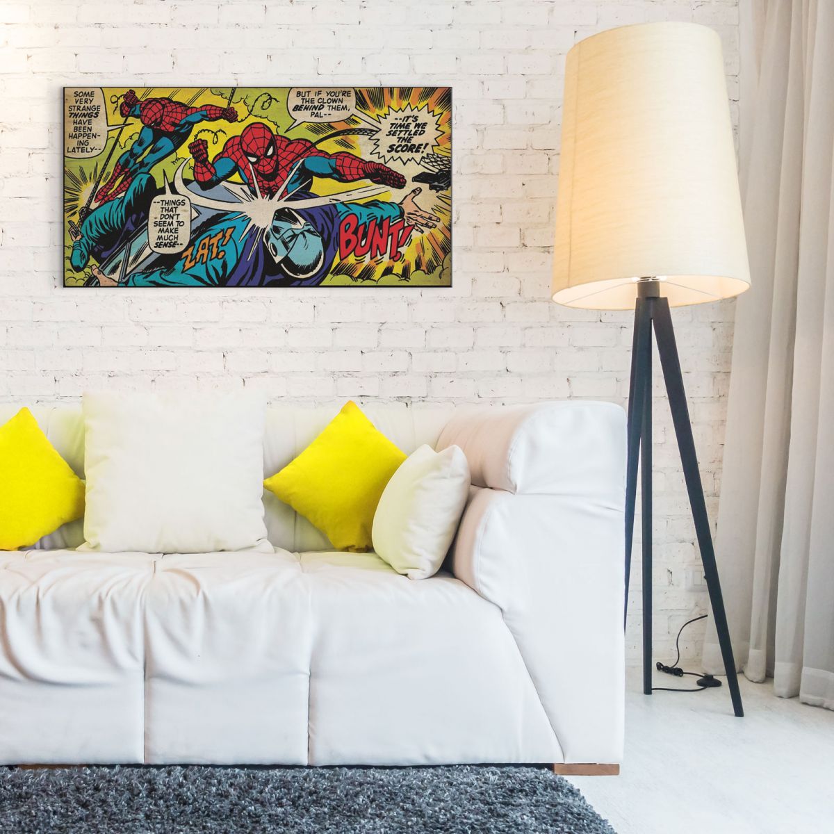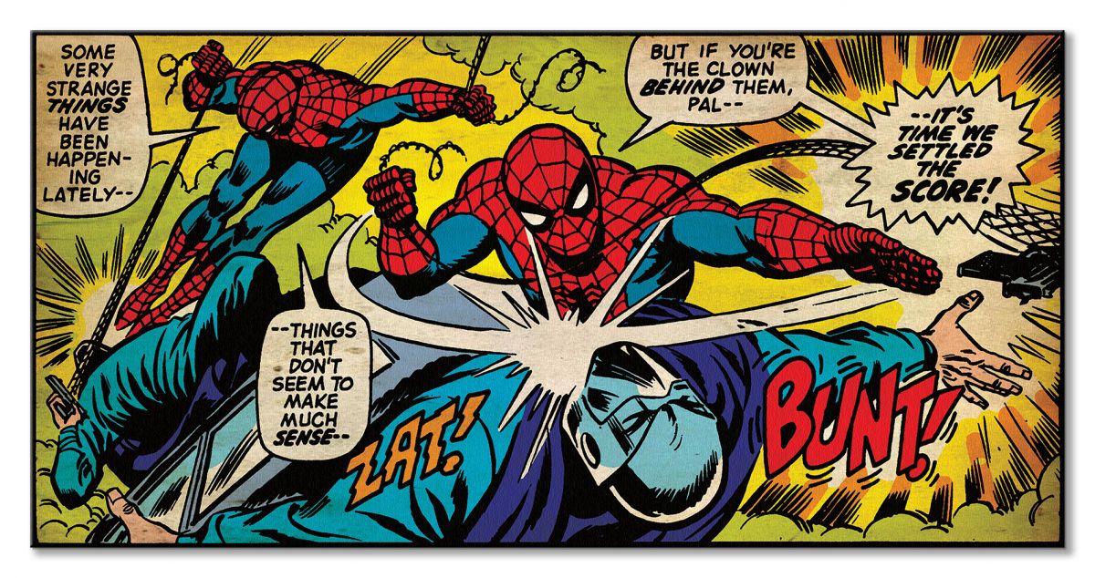 Obraz na ścianę noszący nazwę Spiderman (Settle The Score). Szukasz oryginalnej, ekskluzywnej dekoracji na ścianę? Ten obraz jest dla Ciebie! nasycone kolory i doskonała jakość., obrazy charakteryzuje wysokie nasycenie barw i ostrość, nie sposób oderwać od nich wzrok. Kolory utrzymują się przez długie lata. Mocne bawełniane płótno wygląda naturalnie i oddaje charakter autentyczności obrazu.