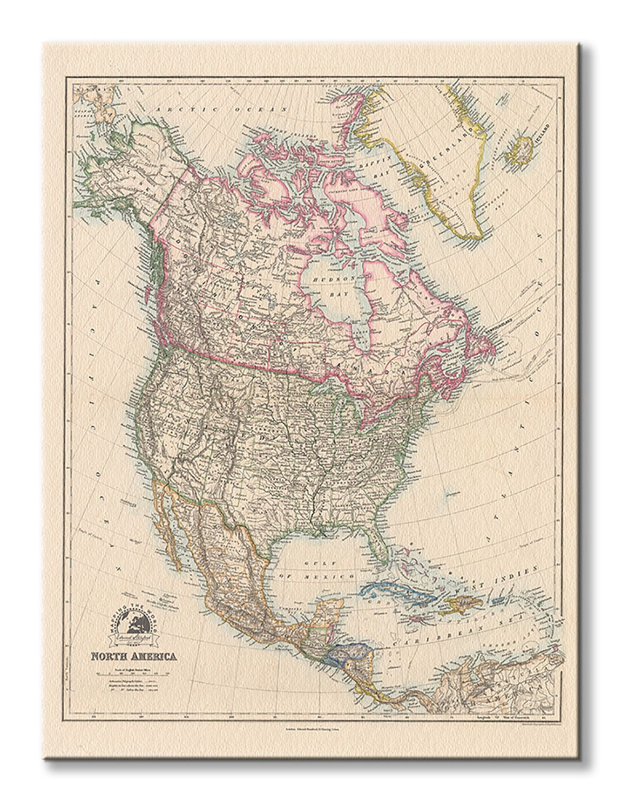 Obraz na ścianę Stanfords Mapa Północnej Ameryki 1884