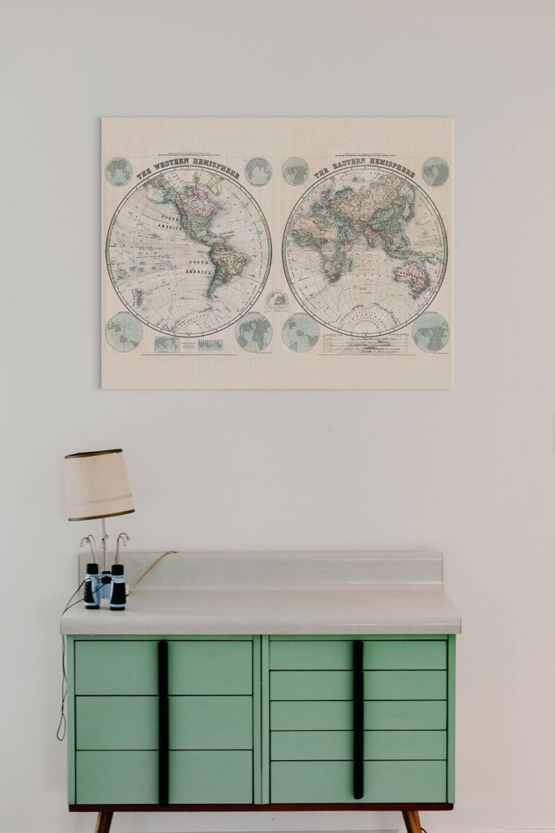 Obraz na ścianę Stanfords Mapa Świata, Półkule 1877