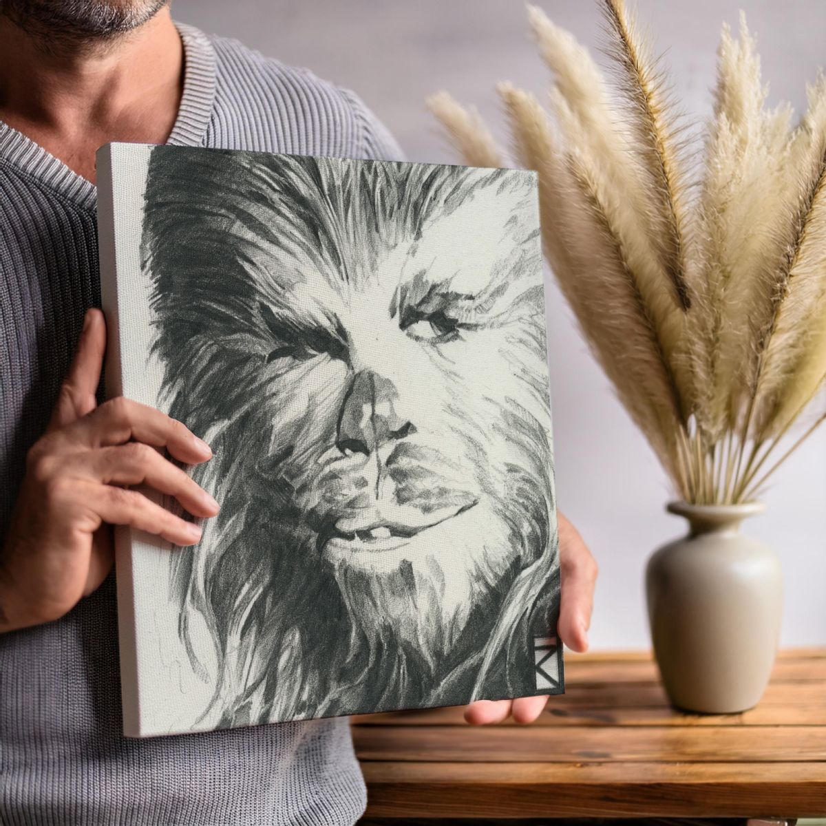 Obraz na ścianę noszący nazwę Star Wars Chewbacca Sketch. Autorstwa: nieznany Szukasz oryginalnego obrazu na ścianę? Wybierz jeden z naszej kolekcji! nasycone kolory i doskonała jakość., obrazy charakteryzuje wysokie nasycenie barw i ostrość, nie sposób oderwać od nich wzrok. Wysokie nasycenie barw i doskonała ostrość nadruku to cechy naszych obrazów. Dzięki najnowszym technologiom kolory obrazu pozostają niezmienione przez bardzo długi czas. Bawełniane płótno wysokiej jakości gwarantuje świetne odwzorowanie i trwałość obrazu.
