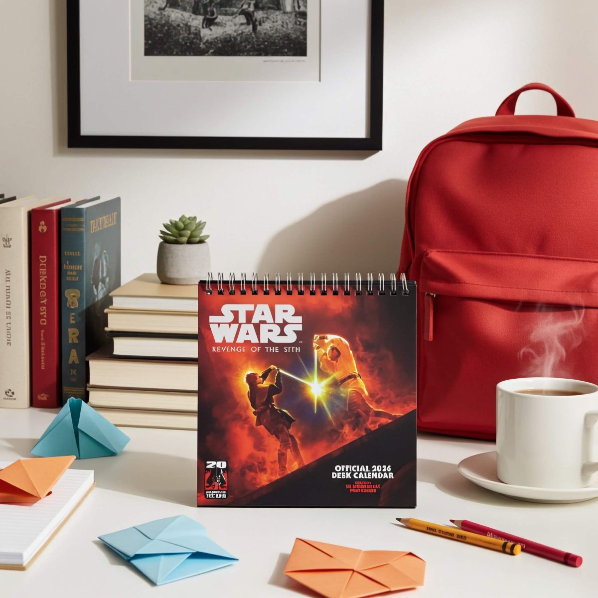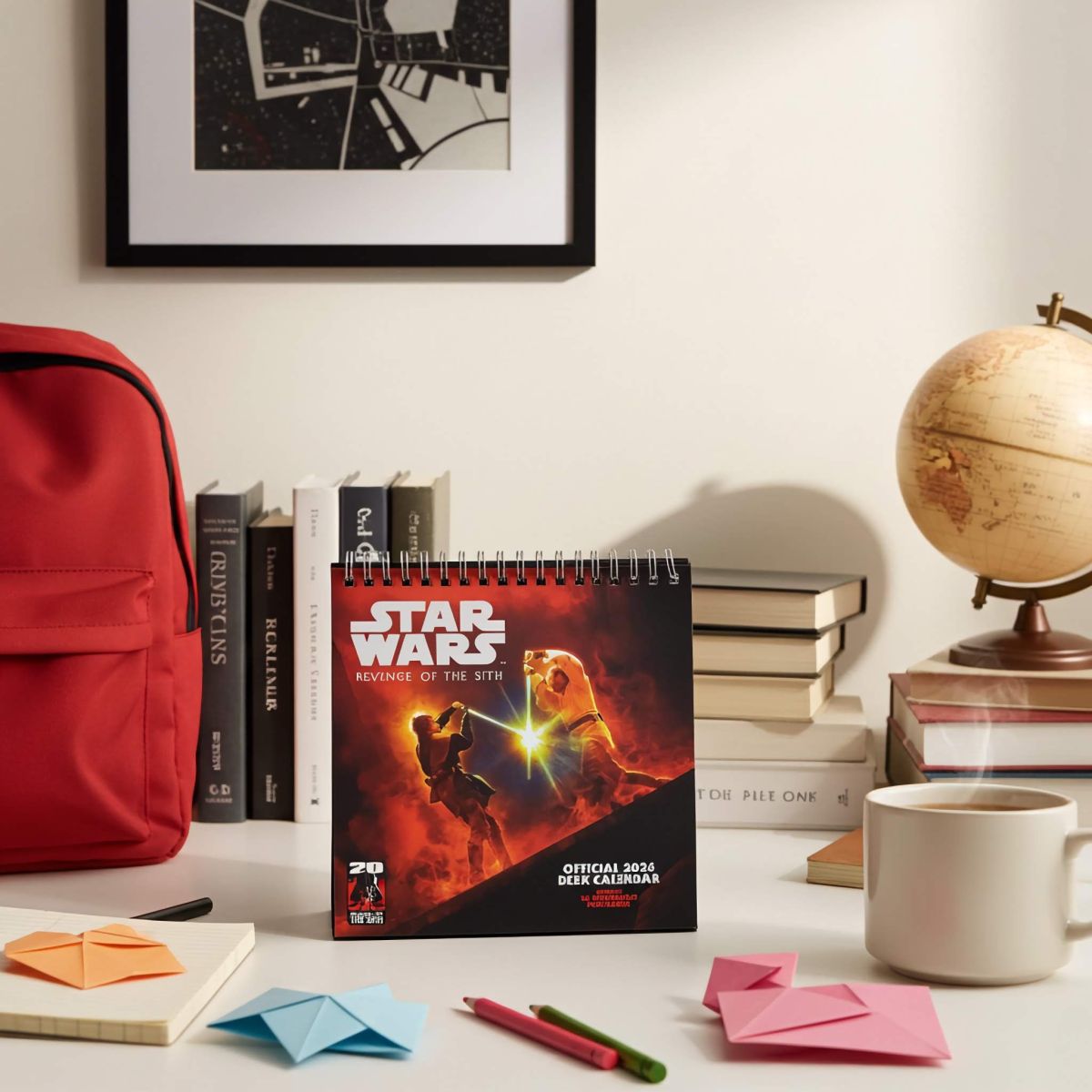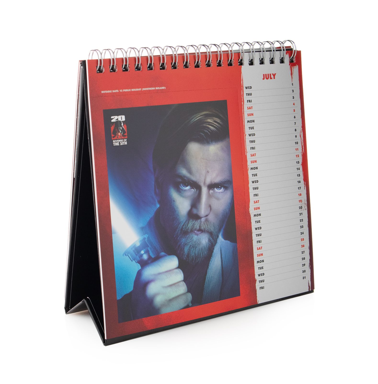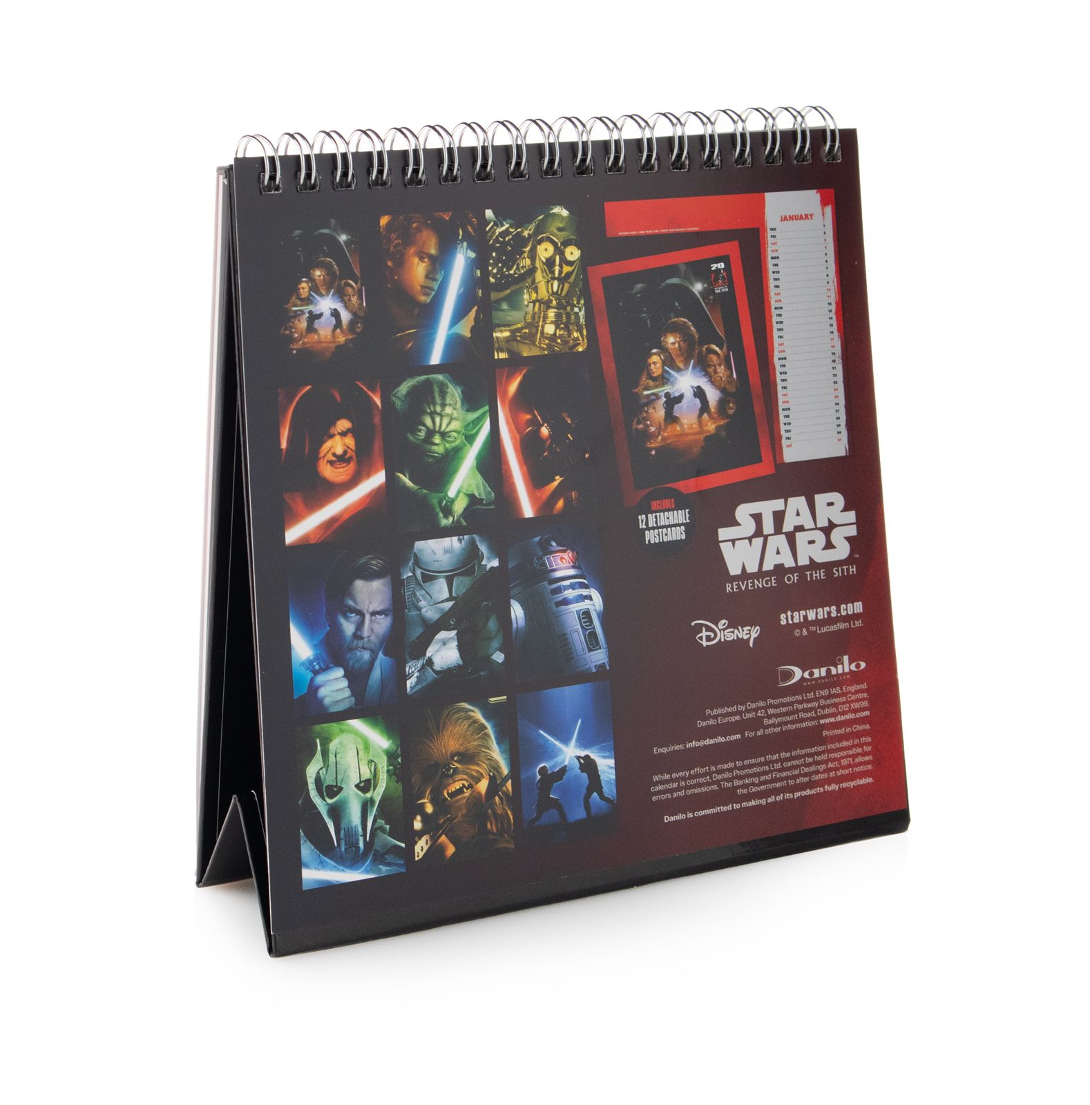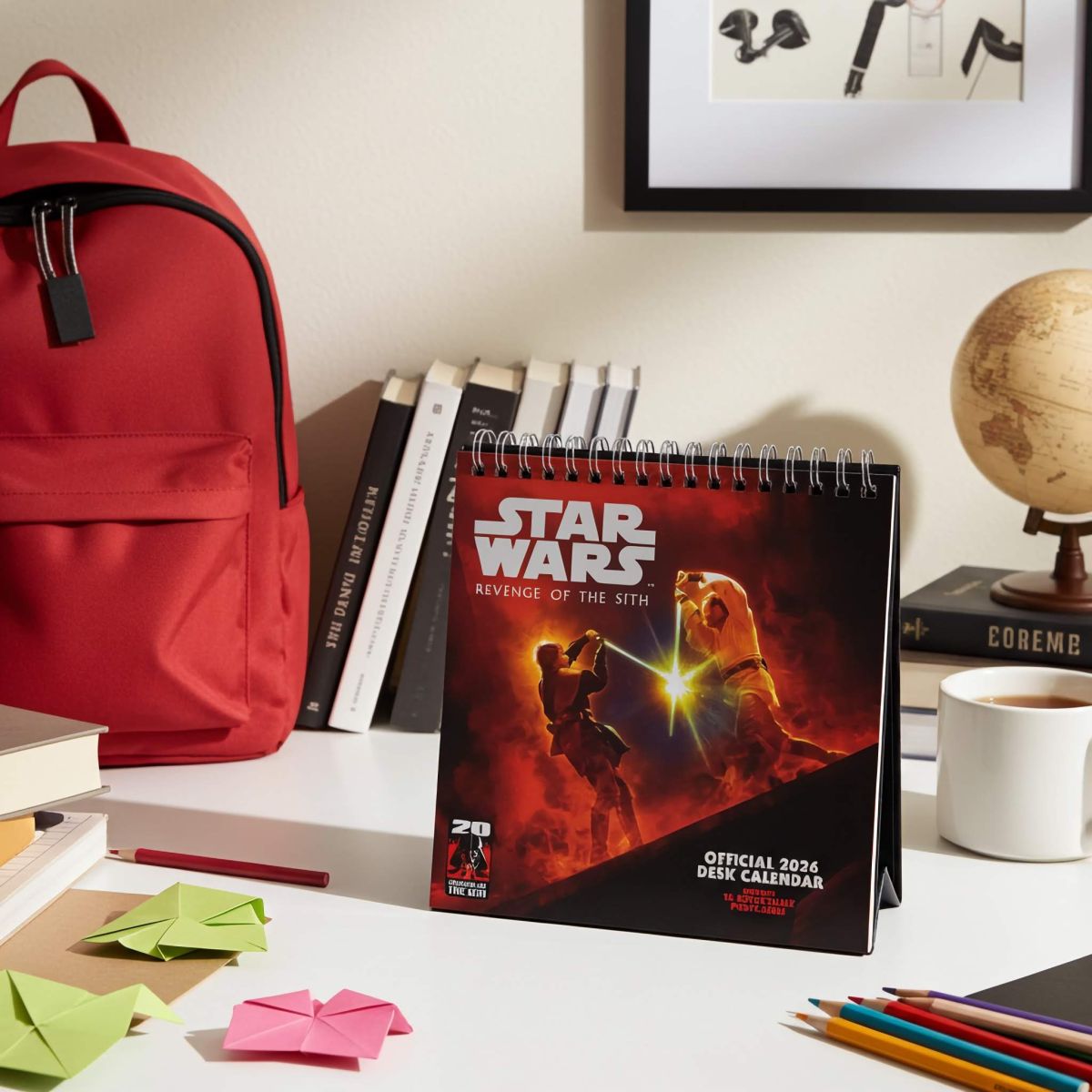Kalendarz biurkowy Star Wars Classic 2026 Spiralny kalendarz biurkowy z grafikami z Revenge of the Sith, zaprojektowany w formie flip-through - każda kartka to osobny miesiąc i jednocześnie kolekcjonerska pocztówka. Idealny gadżet na biurko fana - praktyczny i stylowy. Szczegóły techniczne: Format: kalendarz biurkowy (easel) Oprawa: spiralna 14 stron, w tym 12 miesięcznych ilustracji Design: karta miesiąca z możliwością oderwania Grafika: Star Wars Classic Licencjonowany produkt Oficjalna licencja Star Wars - jakość i autentyczność.