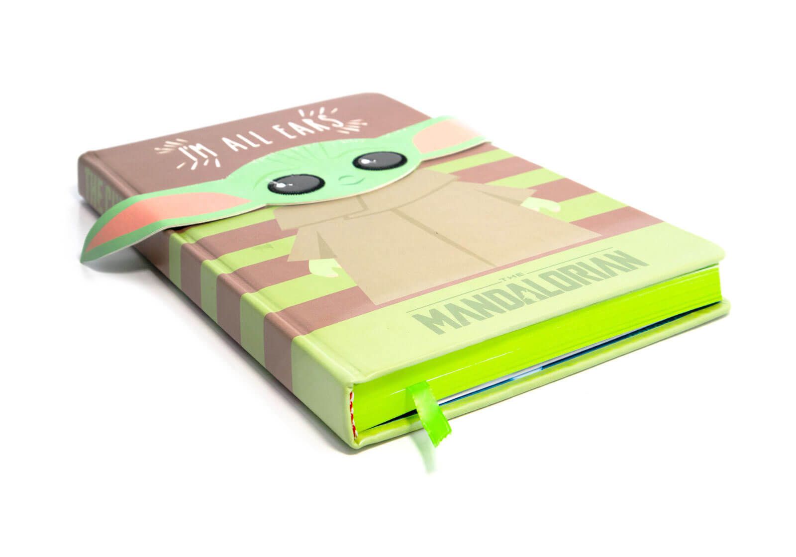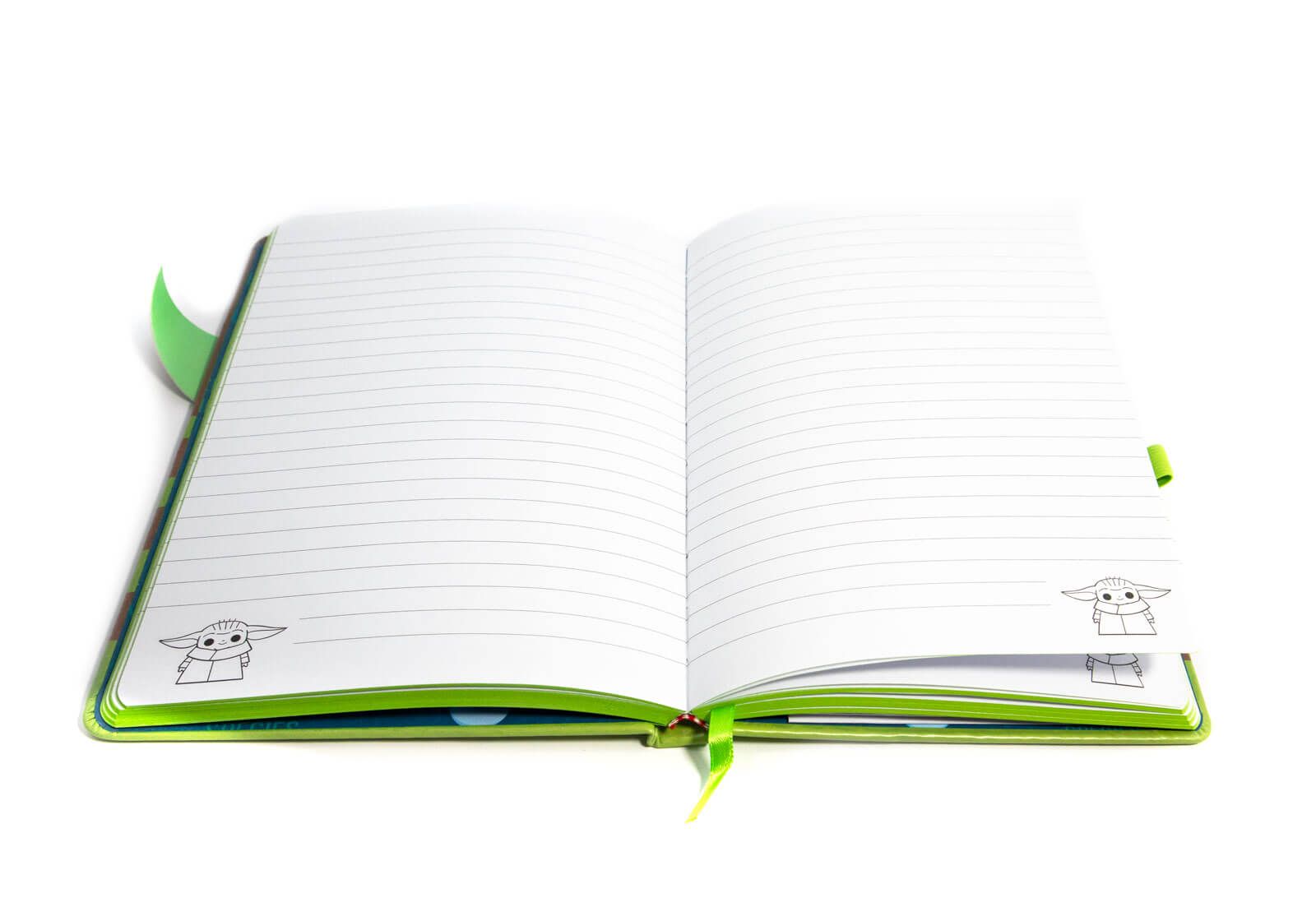 Notes Star Wars The Mandalorian I'm All Ears Green Świetny gadżet który wykorzystasz zarówno w szkole, jak i w pracy. Idealnie sprawdzi się też jako dziennik czy pamiętnik. Twarda okładka, zadrukowana fotografią o intensywnych i wyrazistych barwach. 120 kartek w szeroką linie ozdobione grafiką z głównego motywu. Zamykany na kolorową gumkę. Posiada oficjalną licencję producenta, to oryginalny gadżet! Wymiary zeszytu: 14,8x21 cm