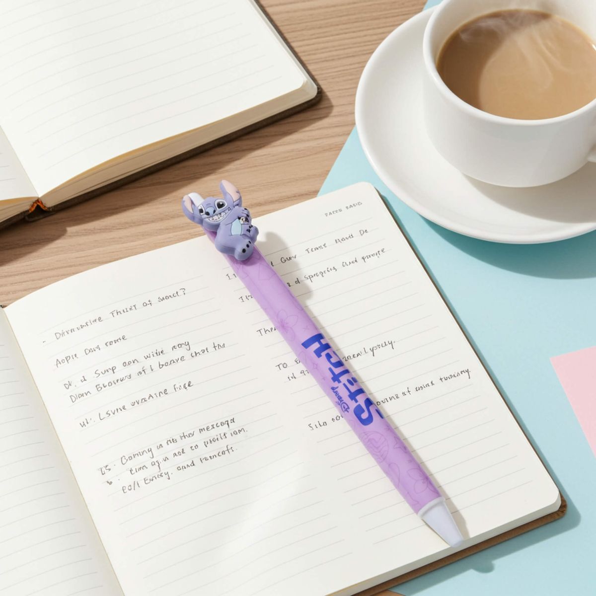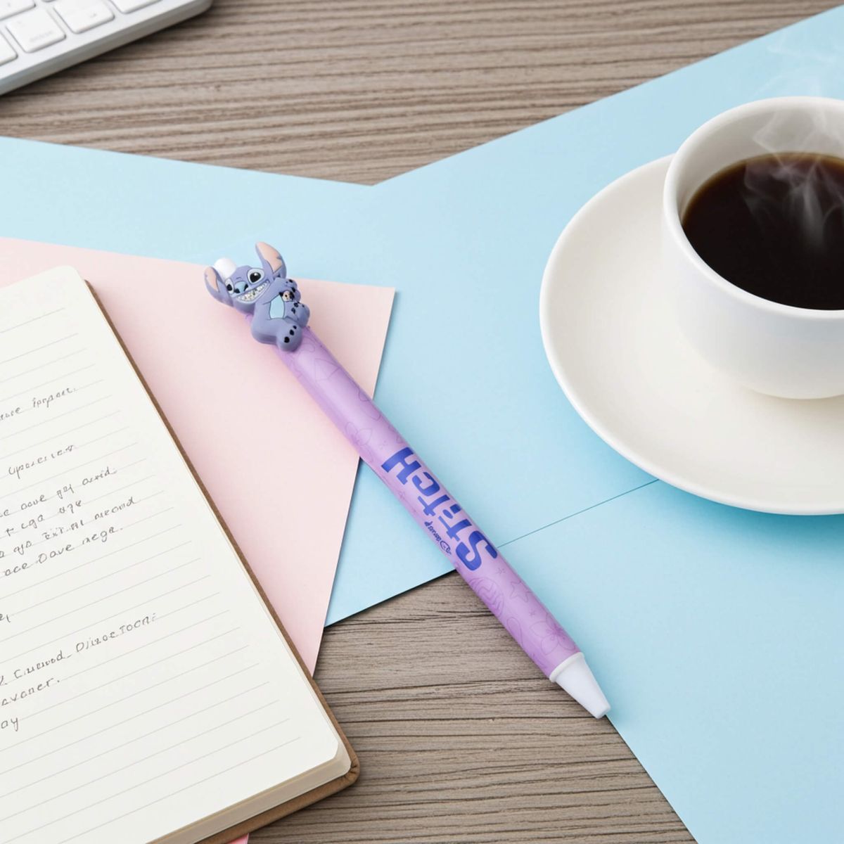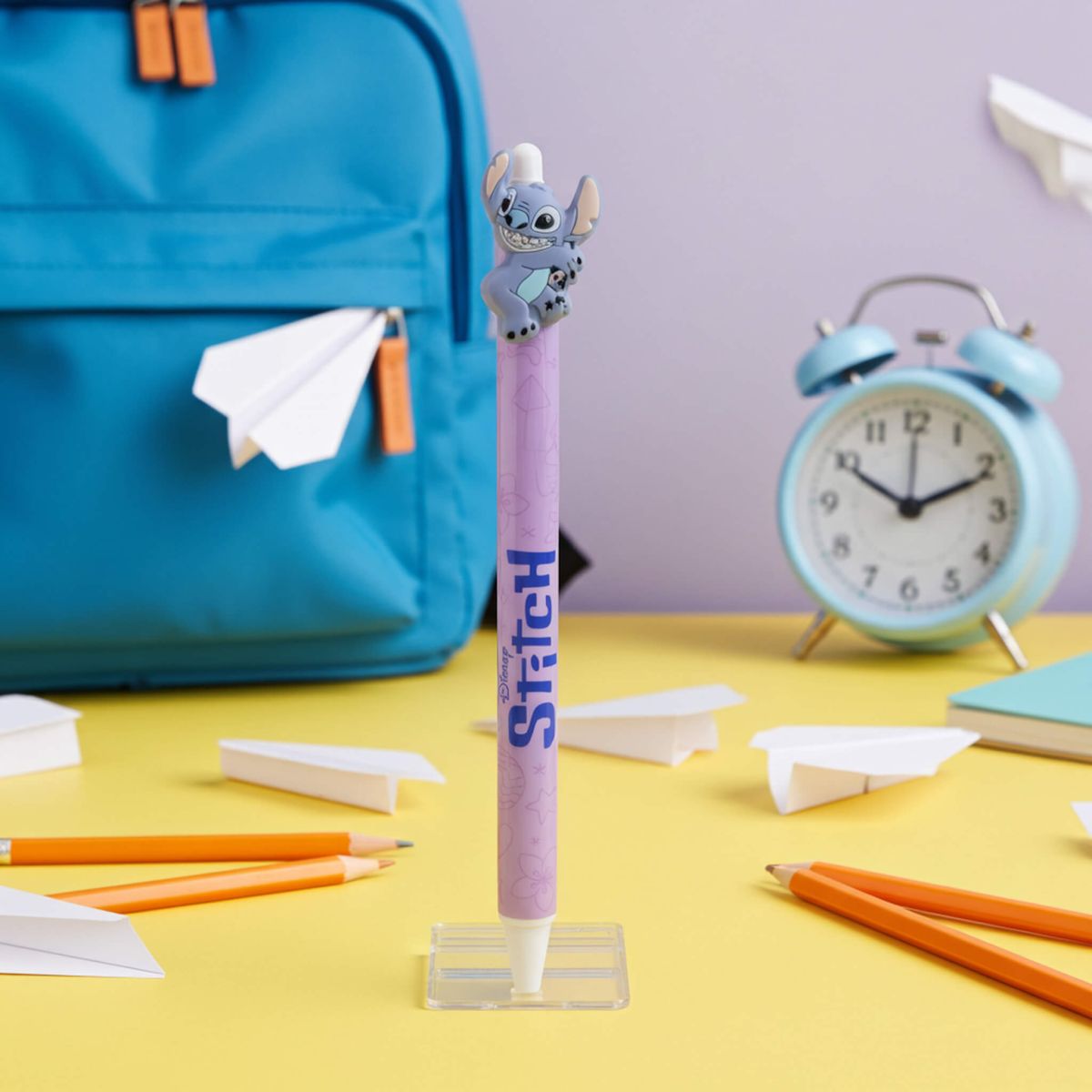 Stitch Pastel Purple - długopis zmazywalny Numer katalogowy: SR2404547C Producent: Pyramid International Wymiary: 15 x 3 cm Stylowy długopis zmywalny z głową Stitcha w pastelowym odcieniu fioletu. Lekki, poręczny i wygodny w codziennym użyciu sprawdzi się podczas pisania w szkole, pracy i domu. Klikany mechanizm, niebieski żelowy wkład oraz końcówka z gumką do ścierania pozwalają na płynne pisanie i łatwą korektę błędów. Szczegóły techniczne Rodzaj: żelowy długopis zmazywalny Kolor tuszu: niebieski Mechanizm: klikany Topper: głowa Stitcha Oryginalny produkt na oficjalnej licencji Disney, stworzony przez Pyramid International.