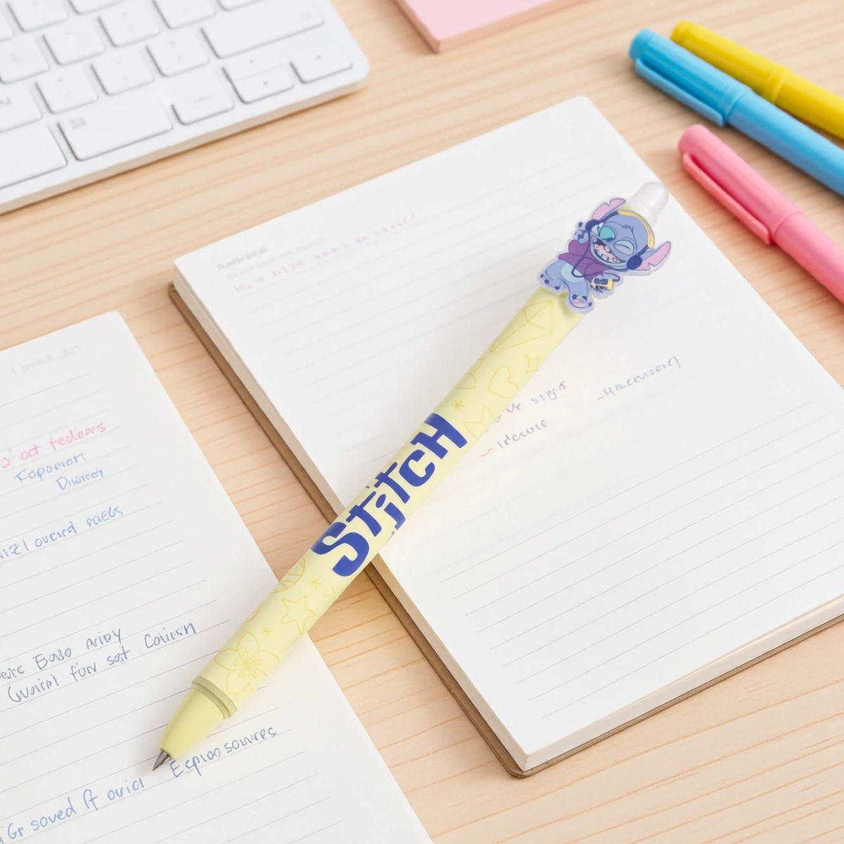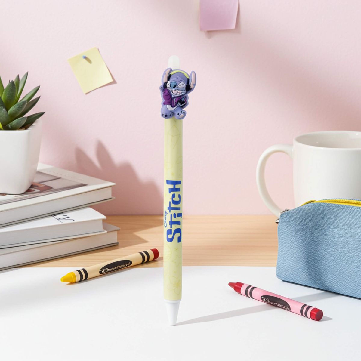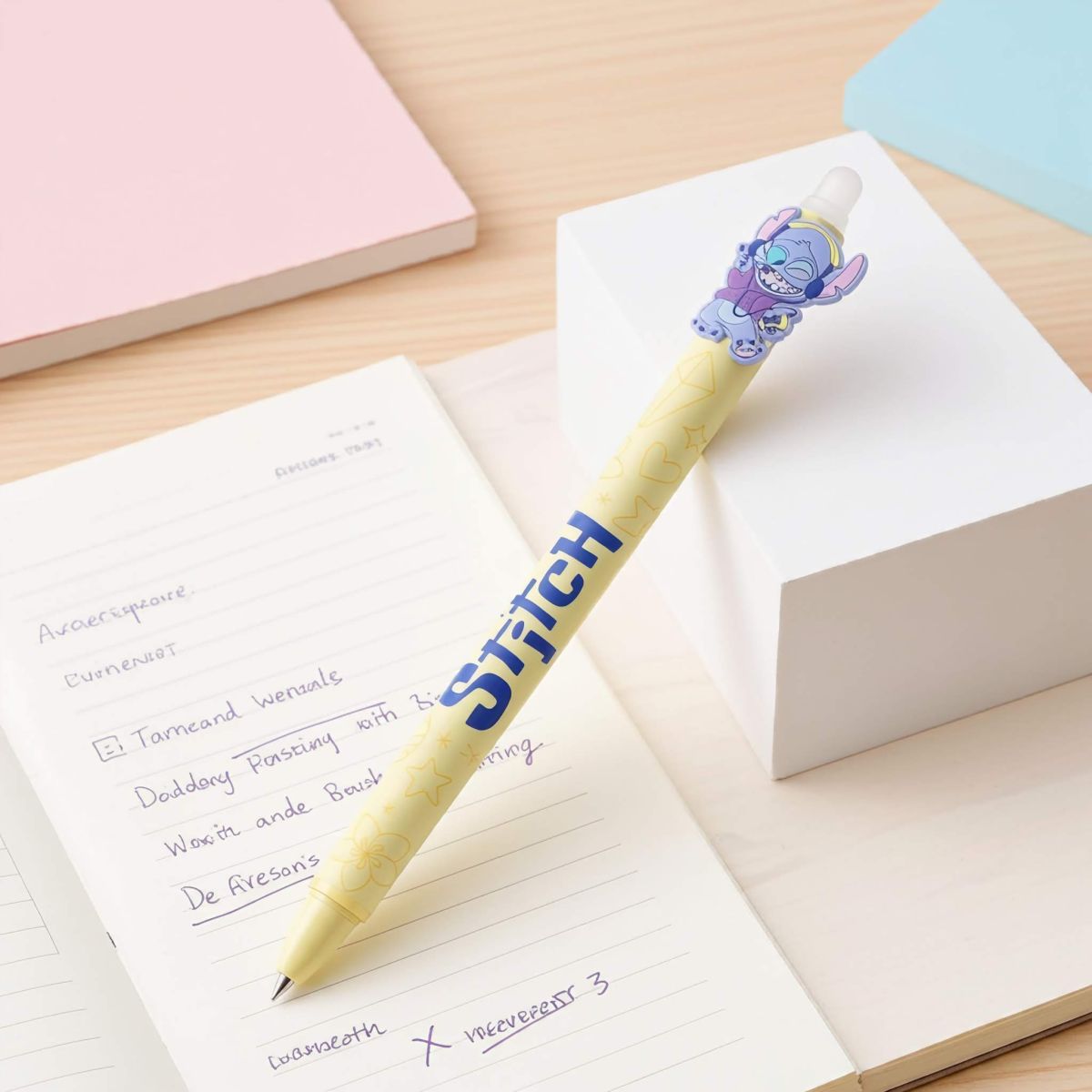 Stitch Pastel Yellow - długopis zmazywalny Numer katalogowy: SR2404547A Producent: Pyramid International Wymiary: 15 x 3 cm Pastelowy długopis z wizerunkiem Stitcha w wersji żółtej to stylowe i funkcjonalne akcesorium do codziennego pisania. Wyposażony w klikany mechanizm i niebieski wkład żelowy, umożliwia precyzyjne notowanie. Gumowa końcówka pozwala łatwo zmazywać błędy bez śladów. Świetnie sprawdza się w szkolnym piórniku, w pracy lub w domu. Szczegóły techniczne Rodzaj: żelowy długopis zmazywalny Kolor tuszu: niebieski Mechanizm: klikany Topper: głowa Stitcha Oryginalny produkt na oficjalnej licencji Disney, stworzony przez Pyramid International.