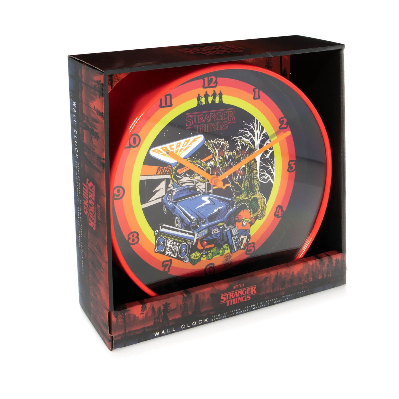 Zegar ścienny Stranger Things Choose Your Adventure Duży zegar ścienny z popularnym motywem. Posiada cichy i precyzyjny mechanizm kwarcowy. Wyposażony jest w proste w użyciu pokrętło, którym w łatwy sposób nastawisz aktualny czas. Na plecach zegara znajduje się mocowanie. Zegar zasilany jest na baterię AA (brak w zestawie). Szczegóły techniczne: Wymiary zegara: 24,5 x 24,5 x 4 cm