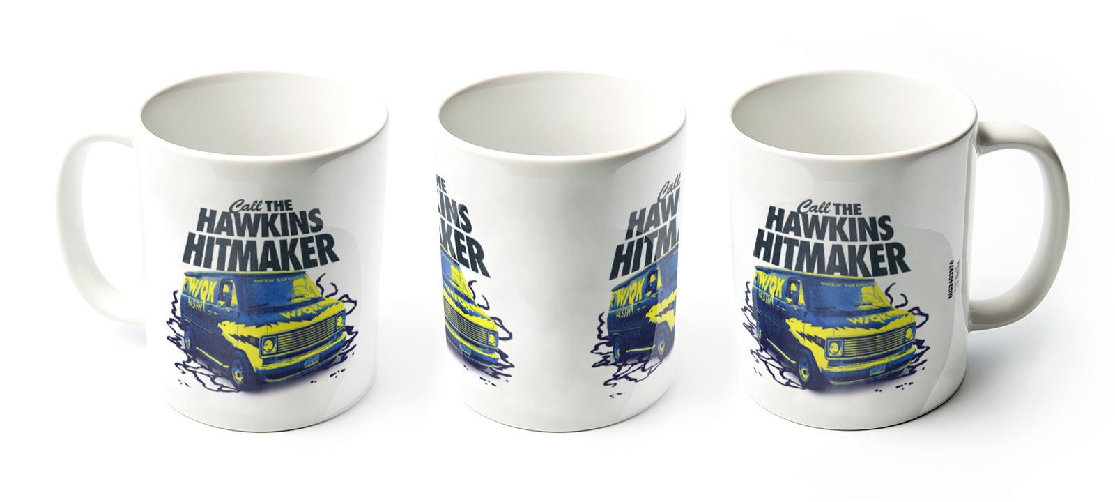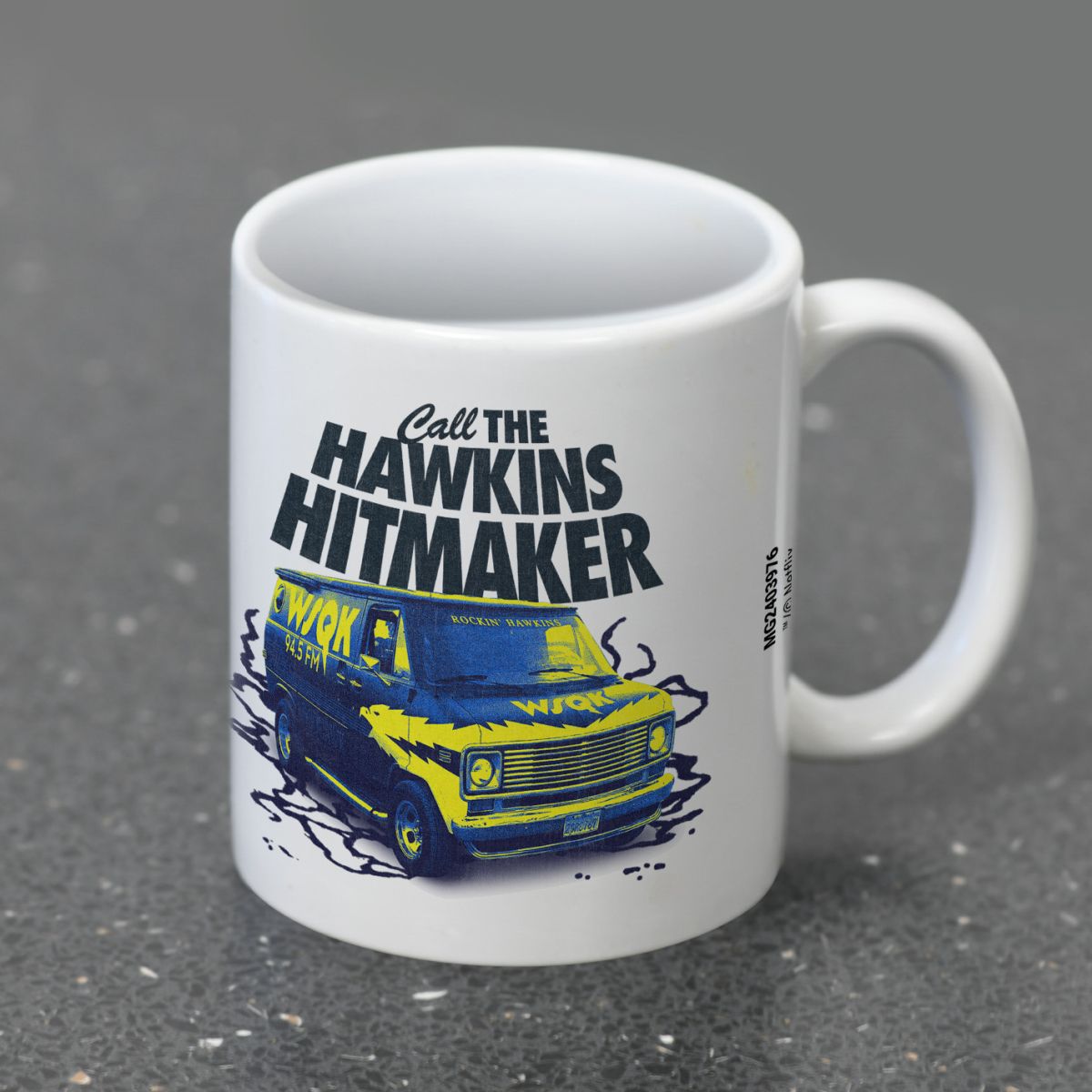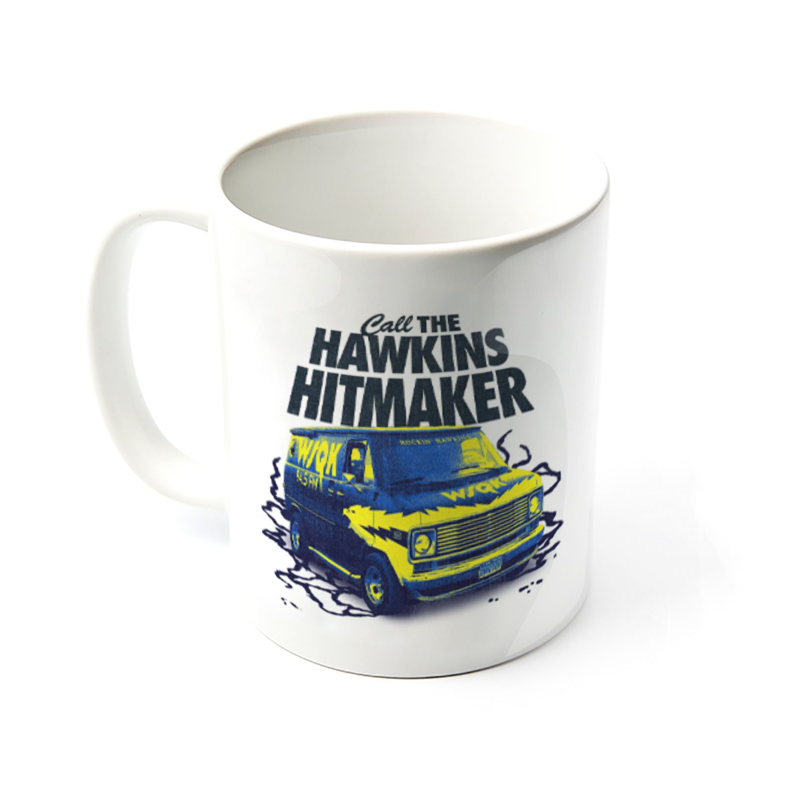 Stranger Things Hawkins Hitmaker - kubek Numer katalogowy: MG2403976 Producent: Pyramid International Ceramiczny kubek 330 ml z grafiką Hawkins Hitmaker z serii Stranger Things. Trwały nadruk, klasyczny biały kolor i wygodny uchwyt zapewniają komfort codziennego użytkowania. Szczegóły techniczne Pojemność: 330 ml Materiał: ceramika Motyw: Stranger Things, Hawkins Hitmaker Kolor: biały, kolorowy nadruk Oryginalny produkt na oficjalnej licencji Stranger Thin