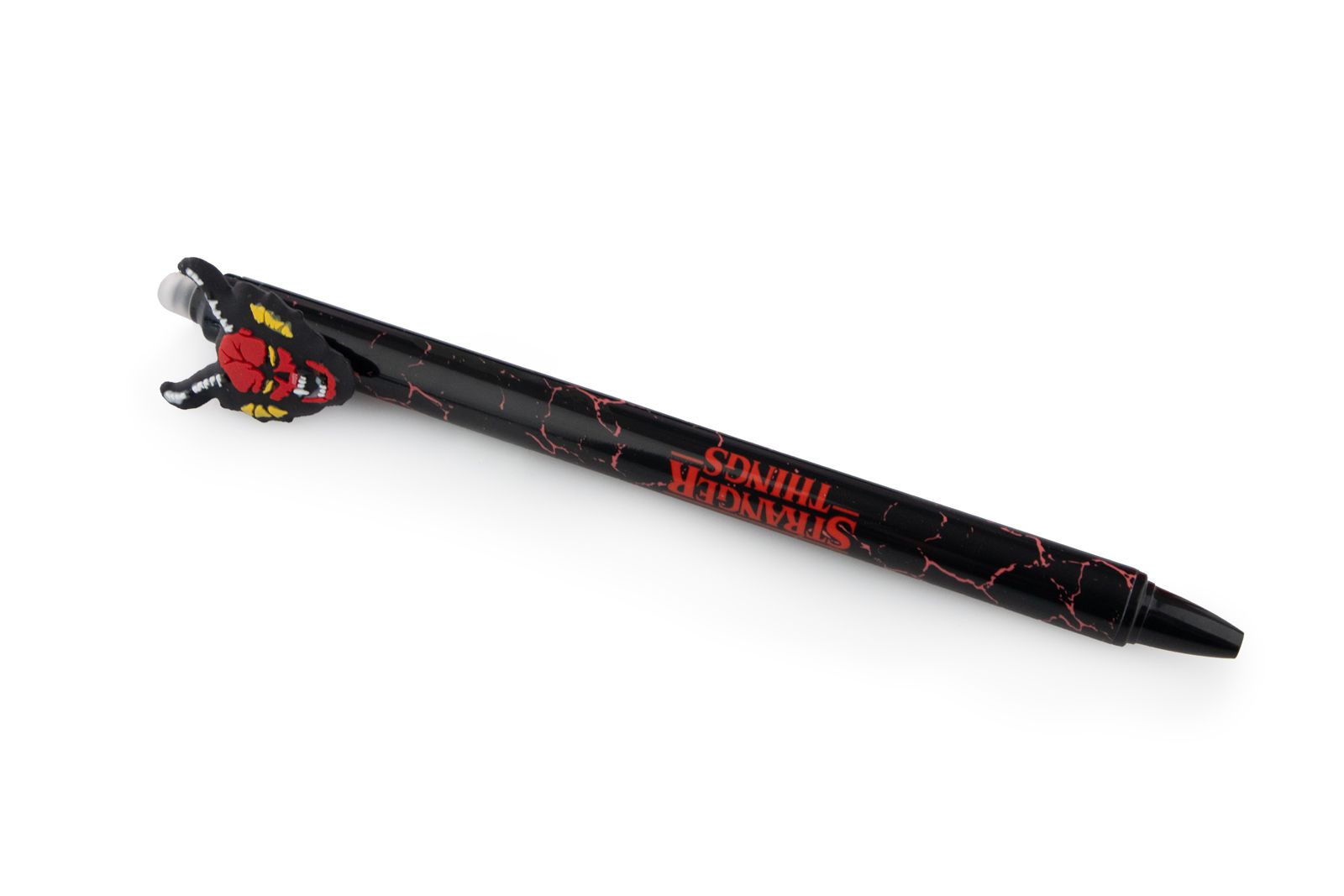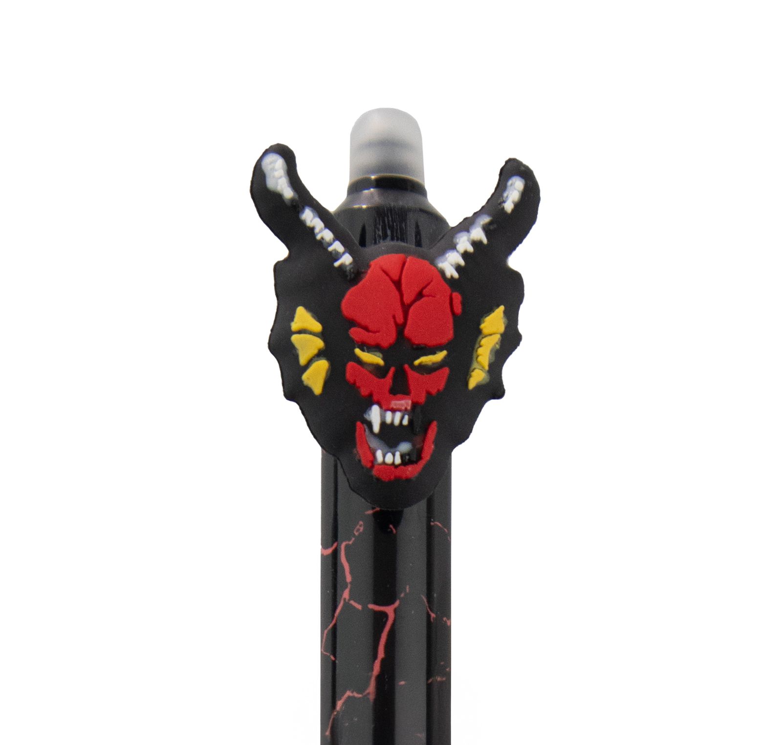 Długopis zmywalny Stranger Things Hellfire Face Długopis z grafiką twarzy demona z Klubu Hellfire. Klikany, z niebieskim wkładem i gumką idealny do notatek i jako kolekcjonerski dodatek dla fana Stranger Things. Szczegóły techniczne Kolor tuszu: niebieski Końcówka: gumka Mechanizm: klik Motyw: Hellfire Face W 100% licencjonowany produkt Stranger Things.