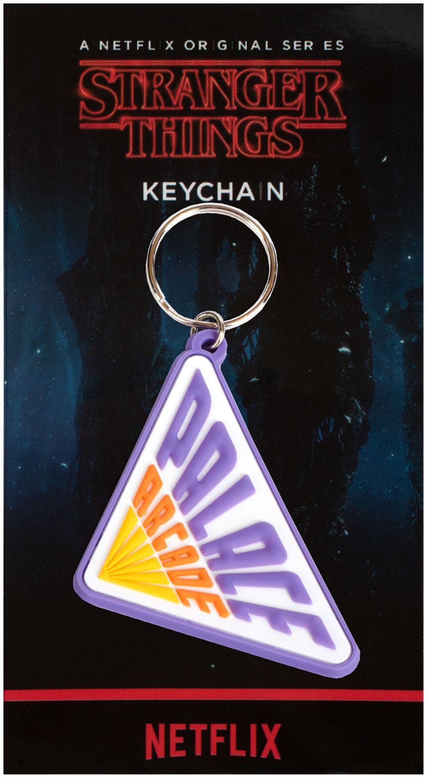 Gumowy brelok Stranger Things Palace Arcade Brelok składa się z gumowej zawieszki oraz metalowego oczka. Będzie kapitalnie prezentował się przy Twoich kluczach. Breloki to świetny pomysł na nagrodę w konkursie szkolnym czy zabawach. Gadżet posiada oficjalną licencję producenta. Przedstawiony brelok ma rozmiar ok. 4,5x6 cm. Marka: Pyramid Posters