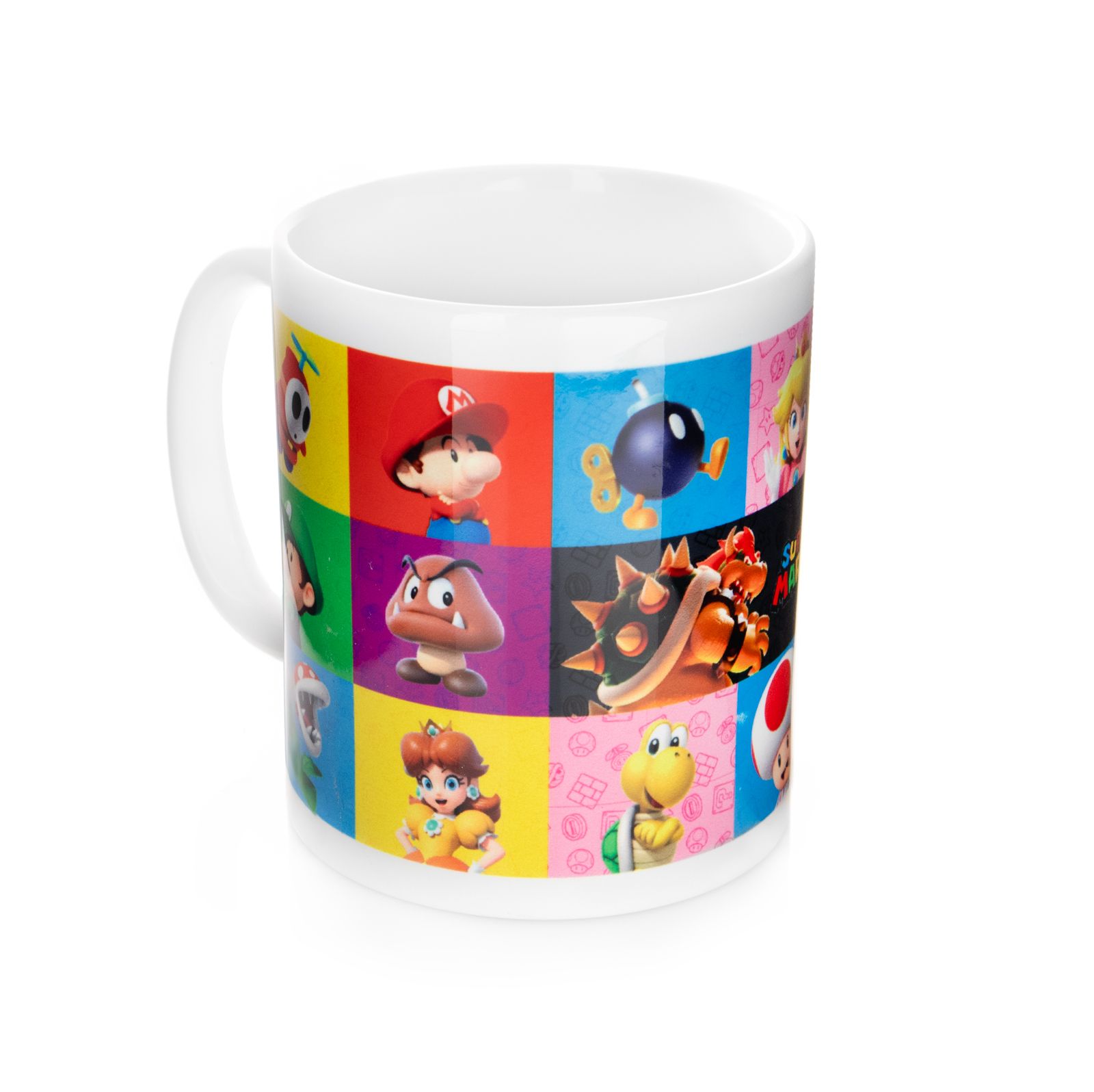 Kubek Super Mario 3D Friends & Foes Kolorowy kubek z bohaterami i przeciwnikami z uniwersum Super Mario to doskonała propozycja dla fanów kultowej serii gier. Grafika przedstawia ikony takie jak Mario, Luigi, Yoshi oraz ich rywali w dynamicznej, trójwymiarowej stylistyce. Świetny zarówno do codziennego użytku, jak i jako upominek dla gracza ten kubek to obowiązkowy gadżet w kolekcji każdego fana Nintendo. Szczegóły techniczne: Pojemność: 330 ml Materiał: Ceramika Wzór: Super Mario Friends & Foes 3D Uwagi: Nie nadaje się do zmywarki ani kuchenki mikrofalowej Licencjono
