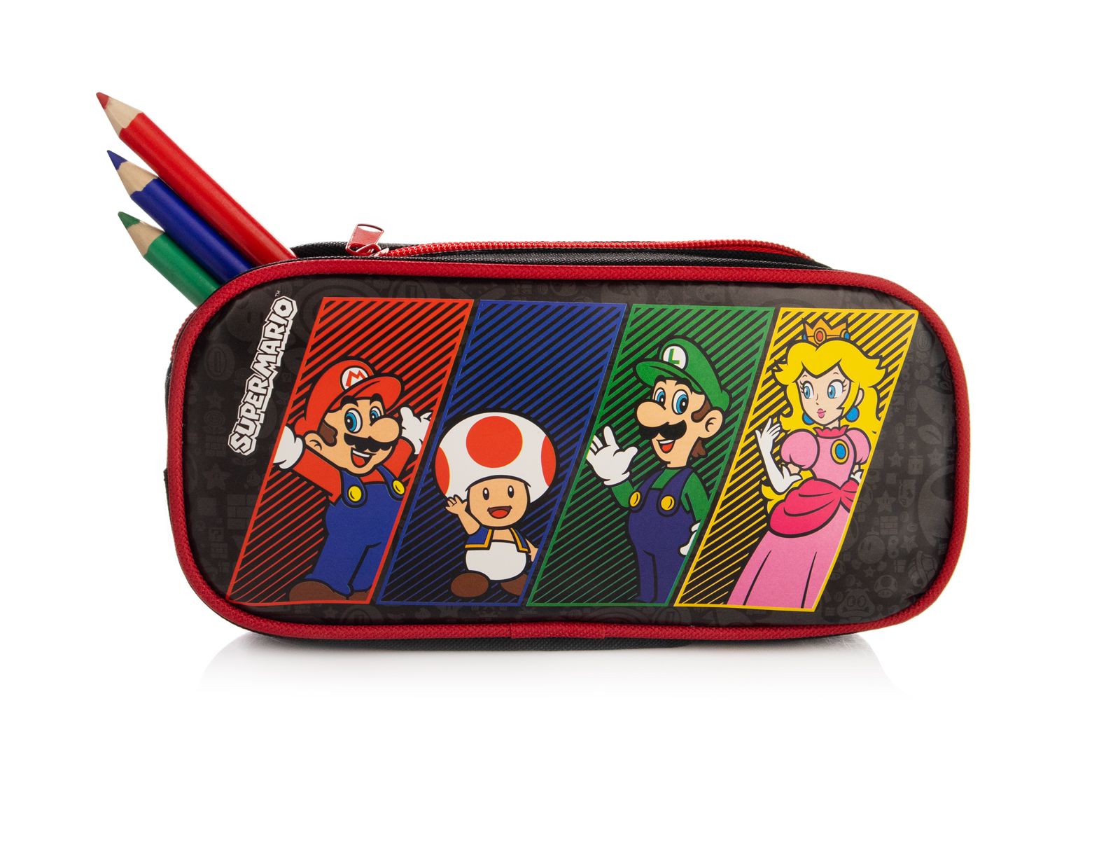Piórnik Super Mario 4 Colour Kolorowy piórnik z bohaterami Super Mario. Zapinany na zamek, mieści wszystkie niezbędne akcesoria szkolne. Idealny dla dzieci i graczy. Oficjalna licencja Nintendo. Szczegóły techniczne: Motyw: Super Mario Zapięcie: zamek Oficjalna licencja Nintendo Produkt w 100% oryginalny.