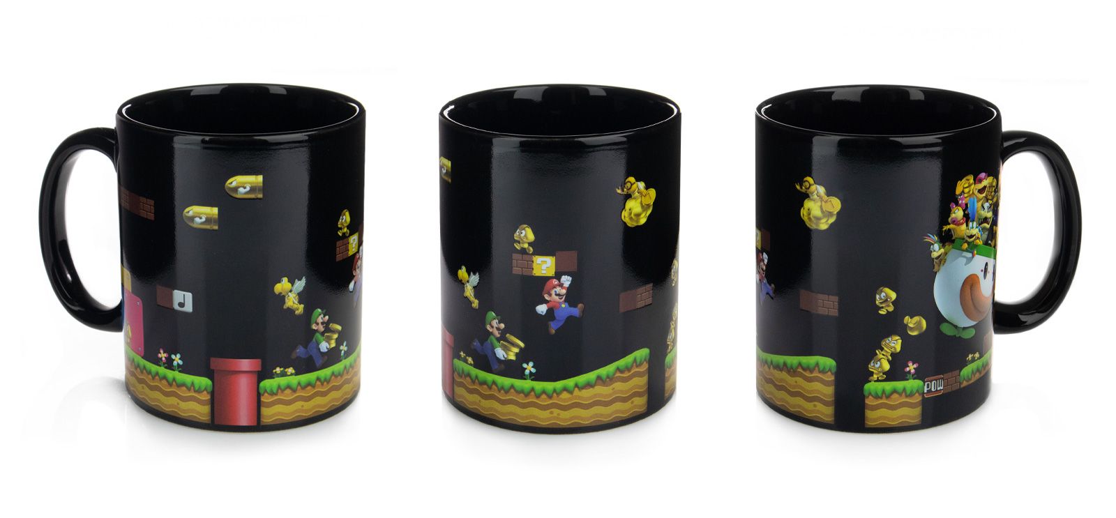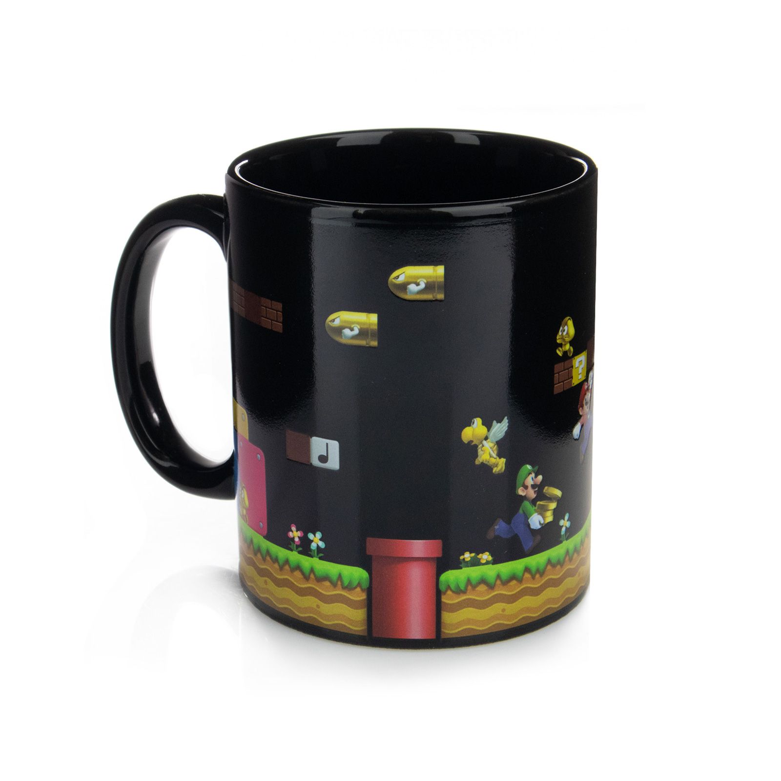 Magiczny kubek Super Mario Gold Coin Rush Nasz kubek z uchem z ulubionym motywem to idealny pomysł na urozmaicenie kuchennej zastawy, oraz świetny pomysł na prezent dla bliskiej osoby. Nasz produkt jest markowy, posiada oryginalną licencję Kubek zmienia motyw gdy zaleje się go gorącą wodą Jest stworzony z najwyższej jakości ceramiki, to gwarancja koloru o wysokim poły