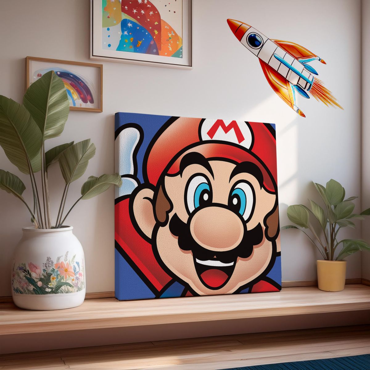 Obraz na ścianę noszący nazwę Super Mario (Mario). Szukasz oryginalnej, ekskluzywnej dekoracji na ścianę? Ten obraz jest dla Ciebie! wyraziste barwy i doskonała ostrość nadruku., obrazy charakteryzuje wysokie nasycenie barw i ostrość, nie sposób oderwać od nich wzrok. Kolory utrzymują się przez długie lata. Doskonałej jakości płótno to gwarancja naturalnego wyglądu i trwałości obrazu.