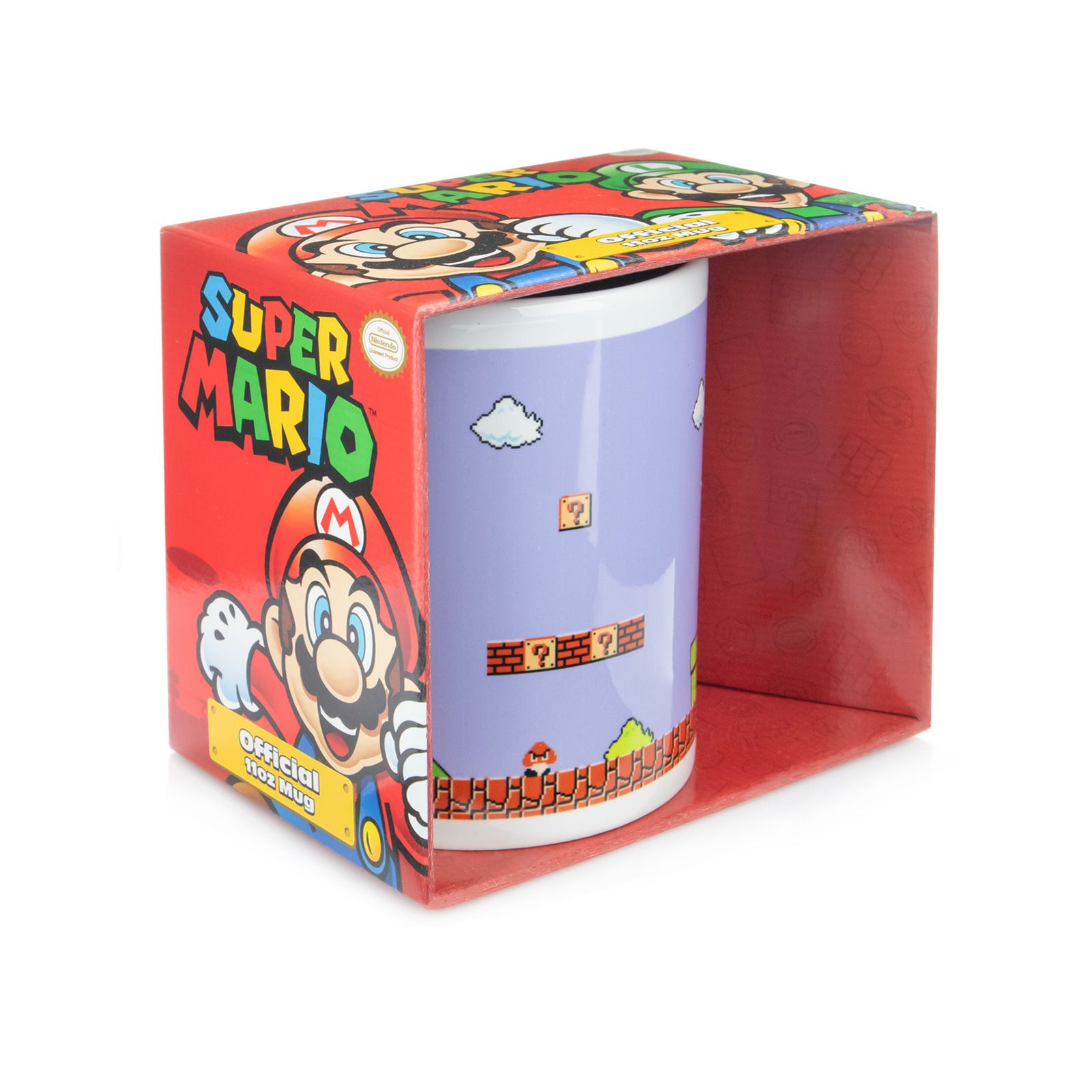 Kubek ceramiczny Super Mario Retro Title Nasz kubek z uchem z ulubionym motywem to idealny pomysł na urozmaicenie kuchennej zastawy, oraz świetny pomysł na prezent dla bliskiej osoby. Nasz produkt jest markowy, posiada oryginalną licencję Jest stworzony