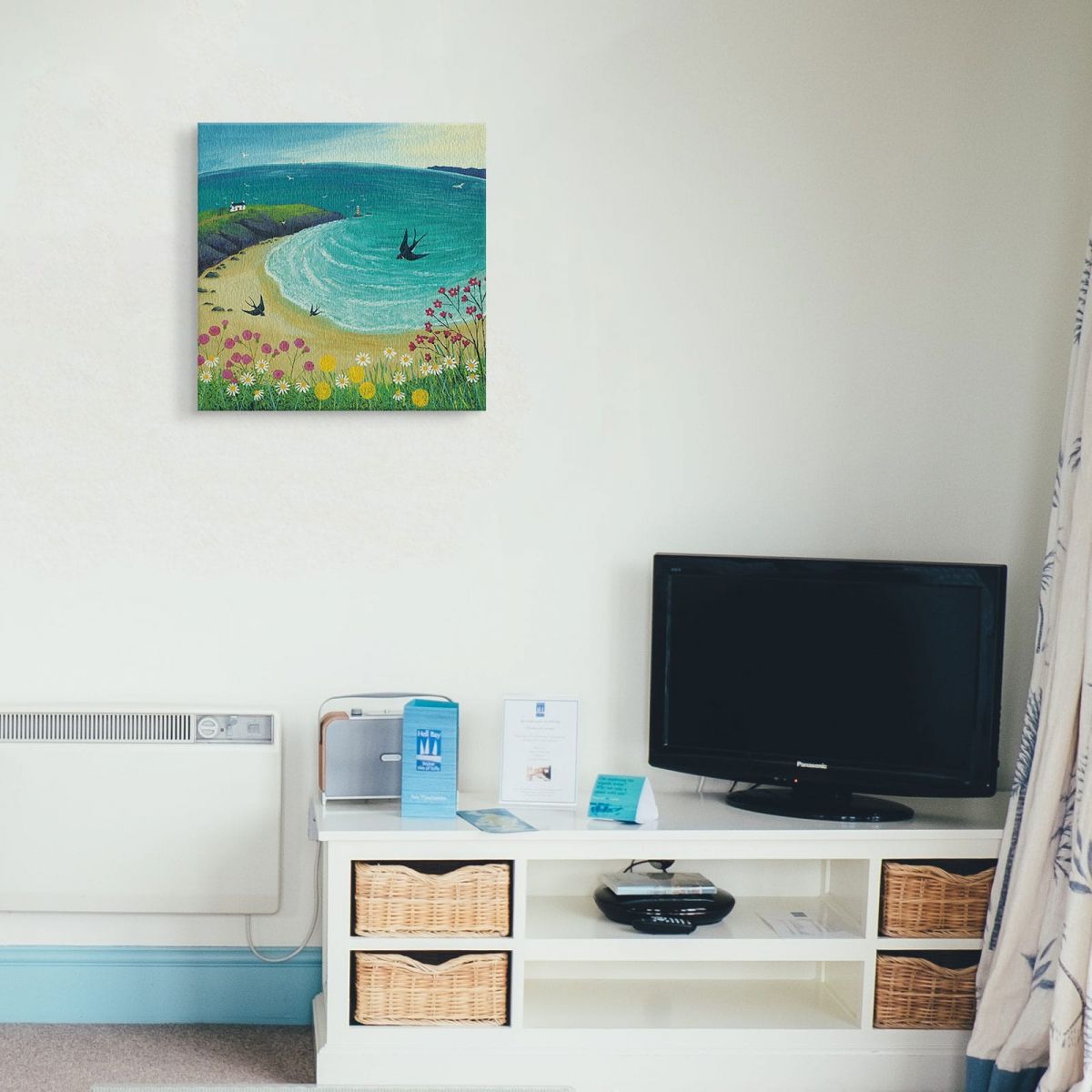 Obraz na ścianę noszący nazwę Swallow Dive. Autorstwa: Jo Grundy Szukasz oryginalnej, ekskluzywnej dekoracji na ścianę? Ten obraz jest dla Ciebie! nasycone kolory i doskonała jakość., obrazy charakteryzuje wysokie nasycenie barw i ostrość, nie sposób oderwać od nich wzrok. Kolory utrzymują się przez długie lata. Bawełniane płótno wysokiej jakości gwarantuje świetne odwzorowanie i trwałość obrazu.