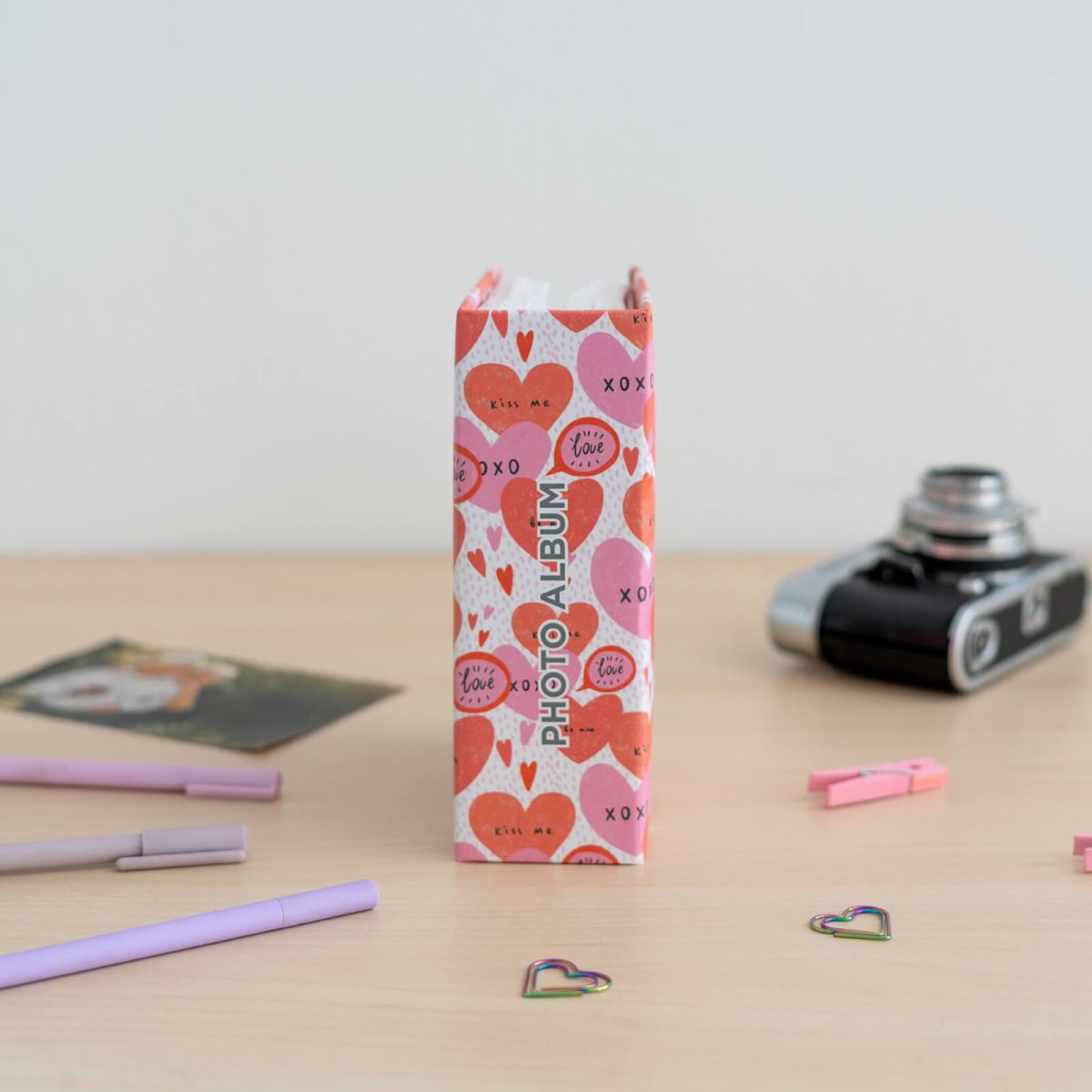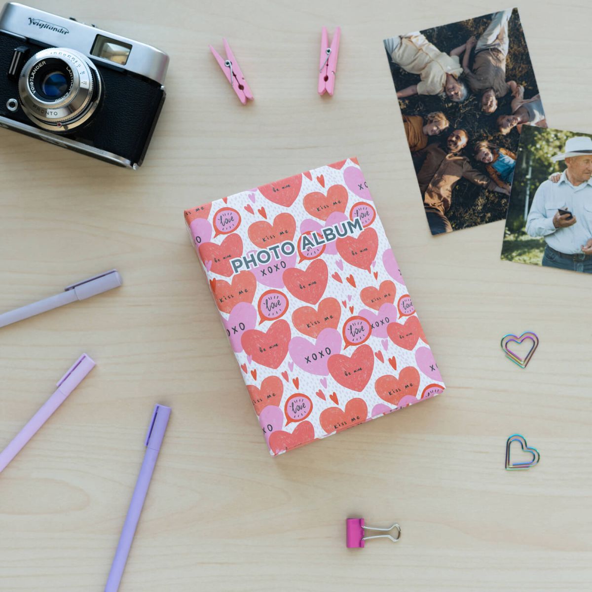 Album na zdjęcia Sweetie Moments Album w twardej okładce zabezpieczony foliową obwolutą. Jego strony posiadają kieszonkę z folii, która ułatwia umieszczanie fotografii. Album posiada 100 stron na których umieścić możesz 100 zdjęć w rozmiarze: 10x15 cm, 9x13 cm, INSTAX, POLAROID Szczegóły techniczne: Wymiary zewnętrzne: 13x17 cm Wymiary strony: 11x15,5 cm Okładka: twarda, papierowa Karty: miękkie, tworzywo sztuczne, kieszenie Rodzaj albumu: zdjęcia wsuwane Wykończenie albumu: klejony Kolor kart: biały