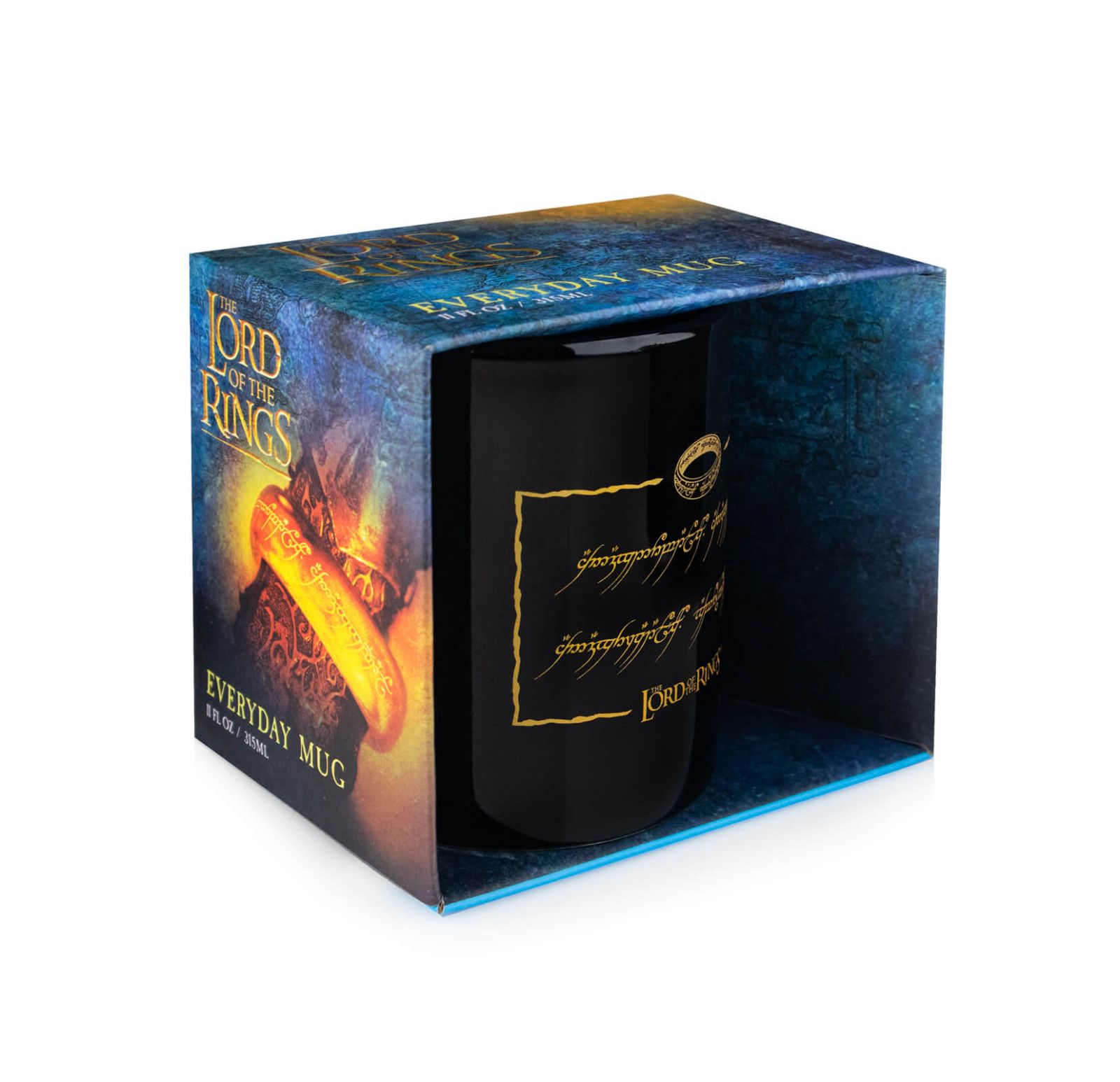 The Lord Of The Rings One Ring - czarny kubek Numer katalogowy: MGB26558 Producent: Pyramid International Elegancki czarny kubek ceramiczny 330 ml z motywem Jedynego Pierścienia z kultowej sagi Władca Pierścieni. Złota grafika z elfią inskrypcją efektownie kontrastuje z matową czernią, tworząc stylową całość. Szczegóły techniczne Pojemność: 330 ml Materiał: ceramika Motyw: The Lord of the Rings One Ring Kolor: czarny Oryginalny produkt na oficjalnej licencji The Lord of the Rings.