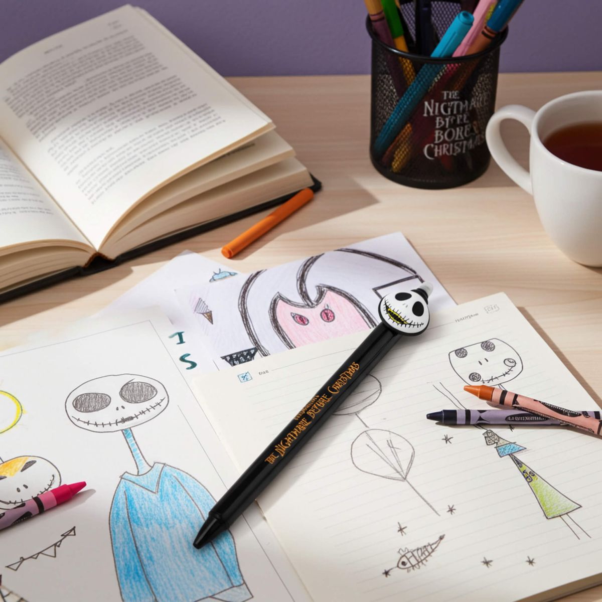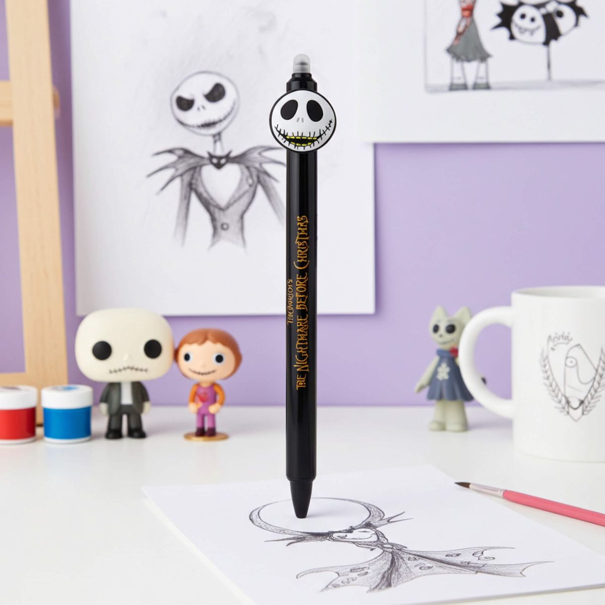The Nightmare Before Christmas Bone Man - długopis zmazywalny Numer katalogowy: SR2404715E Producent: Pyramid International Wymiary: 15 x 3 cm Długopis żelowy inspirowany postacią Jacka Skellingtona - Bone Mana z kultowego filmu Tima Burtona The Nightmare Before Christmas. Utrzymany w ciemnej kolorystyce z topperem w kształcie szkieleta. Wyposażony w klikany mechanizm, zmywalny niebieski tusz i gumkę do ścierania. Doskonały do codziennego użytku i kolekcji fanowskich. Szczegóły techniczne Rodzaj: żelowy długopis zmazywalny Kolor tuszu: niebieski Mechanizm: klikany Topper: Jack Skellington Oficjalnie licencjonowany produkt Disney, wyprodukowany przez Pyramid International.