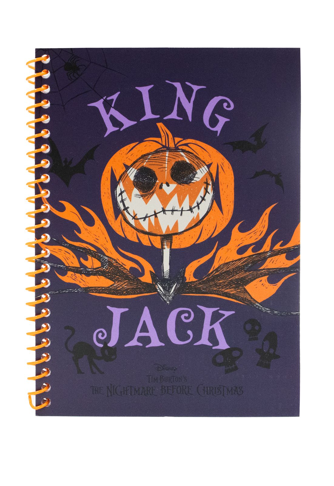 Notes z twardą okładką przedstawia Jacka jako Króla Dyni, otoczonego płomieniami, z fioletowym tłem pełnym nietoperzy i pajęczyn, co tworzy niepowtarzalny, mroczny klimat.