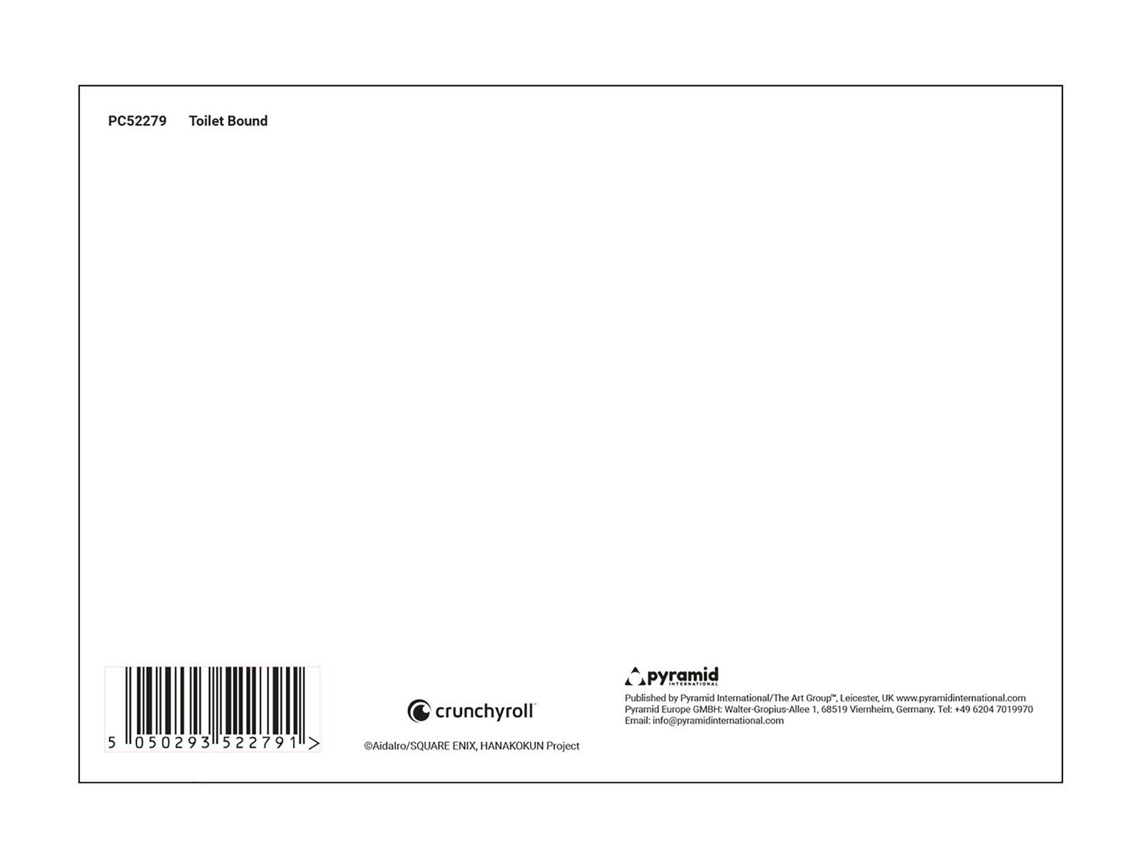 Toilet Bound - pocztówka Pocztówka z humorystycznym motywem "Toilet Bound", który na pewno wywoła uśmiech na twarzy. Idealna jako dekoracja, dodatek do kolekcji lub mały gest dla znajomych, który przypomina, że poczucie humoru to ważna część codzienności. Wykonana z wysokiej jakości papieru, trwała i estetyczna. Przesyłanie pocztówek to tradycja, która nigdy nie wychodzi z mody, a zabawne wzory potrafią poprawić nastrój każdego dnia. Szczegóły techniczne Format: A6 (14,8x10,5 cm) Materiał: papier premium Licencjonowany produkt Produkt oryginalny. Wspieraj autentyczność.