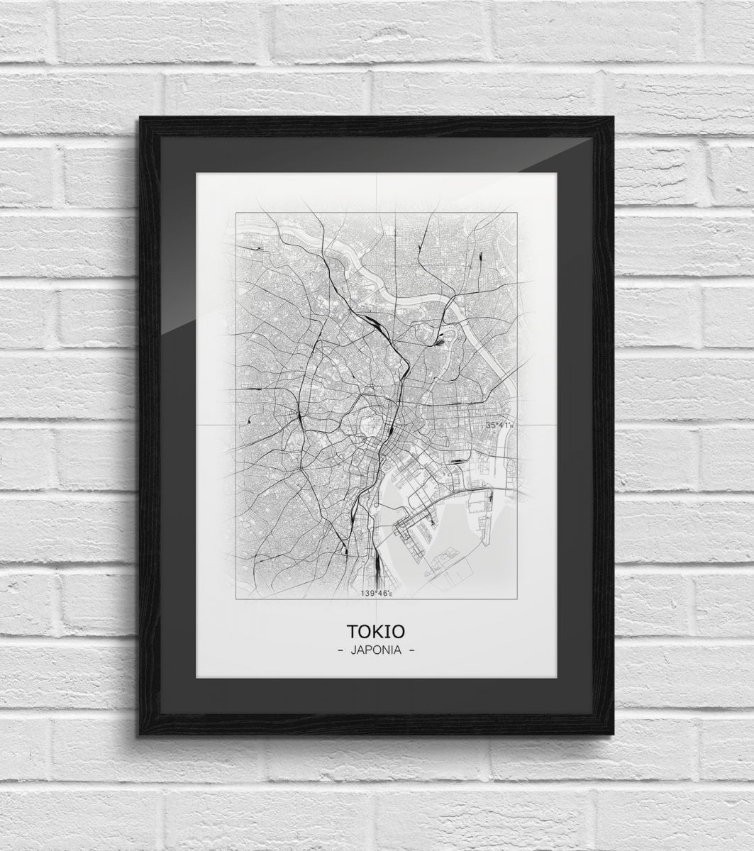 Artystyczna mapa na ścianę, zatytułowana Tokio - Czarno biała mapa Ciekawy i oryginalny plakat na ścianę. Wyprodukowany na papierze o wysokiej gramaturze w cyfrowej jakości. Plakat wykonany przez polskiego producenta. Świetnie nadaje się do oprawienia w ramy lub antyramy. Specyfikacja papier satynowy 220g/m2 druk cyfrowy wymiary plakatu 50x70 cm