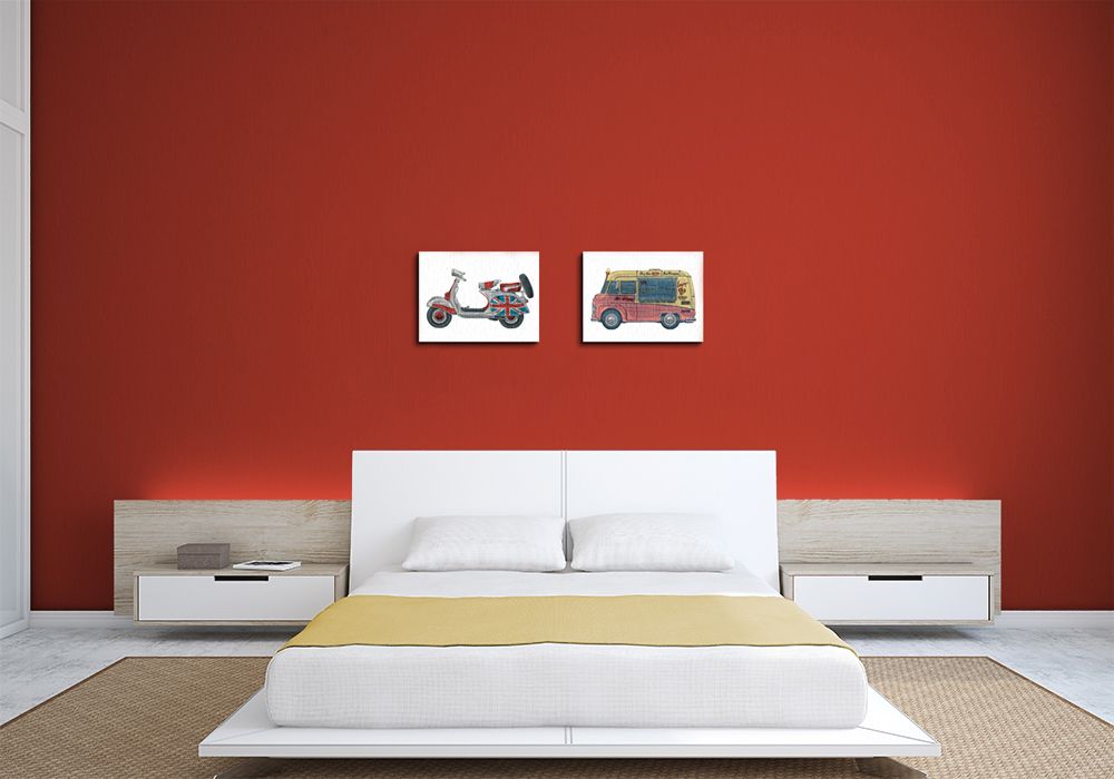 Obraz na ścianę noszący nazwę Vespa. Autorstwa: Barry Goodman Szukasz oryginalnego obrazu na ścianę? Wybierz jeden z naszej kolekcji! fantastyczne kolory i rewelacyjna ostrość., obrazy charakteryzuje wysokie nasycenie barw i ostrość, nie sposób oderwać od nich wzrok. Obrazy są ostre a ich barwy maksymalnie nasycone co gwarantuje genialny efekt na ścianie. Mocne bawełniane płótno wygląda naturalnie i oddaje charakter autentyczności obrazu.